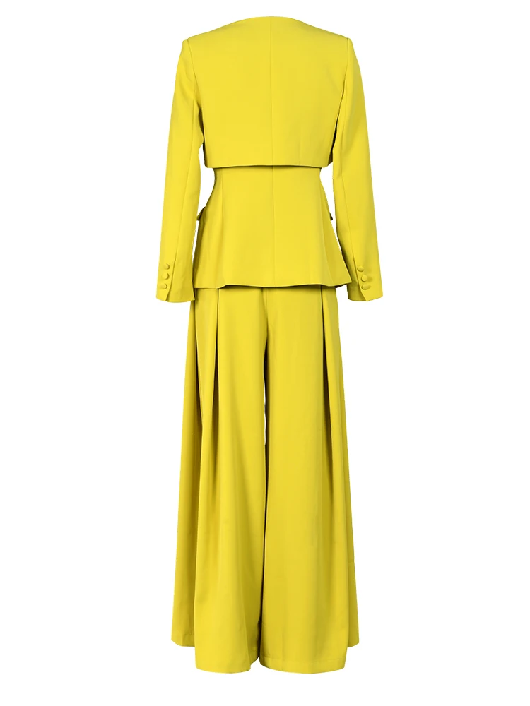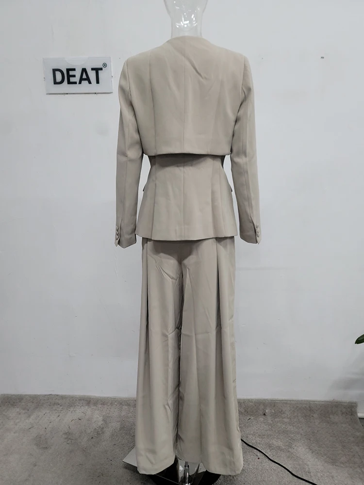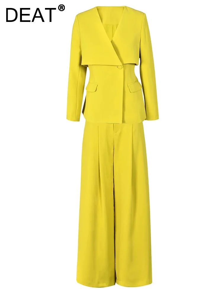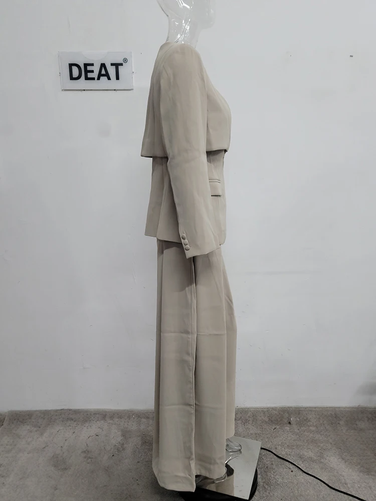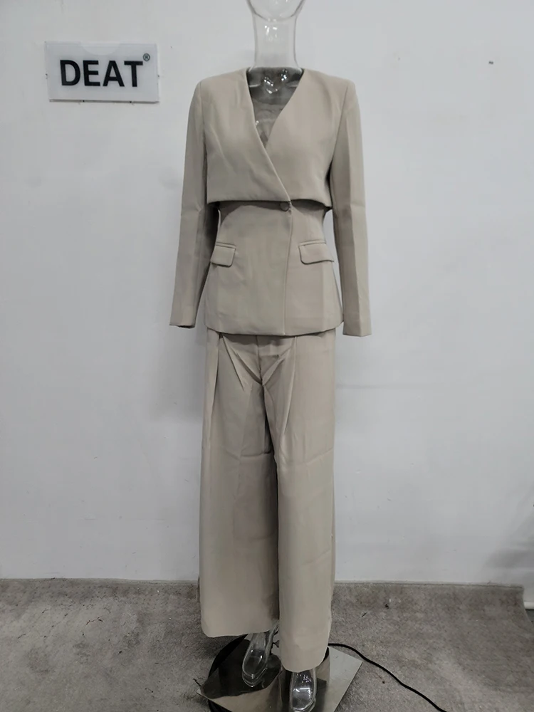 أطقم بنطال ساق واسعة أنيقة من DEAT ، أكمام طويلة ، سترة برقبة على شكل حرف V ، خصر متجمع ، فضفاض ، سيدة مكتب ، جديد ، الخريف ، 15G7152
