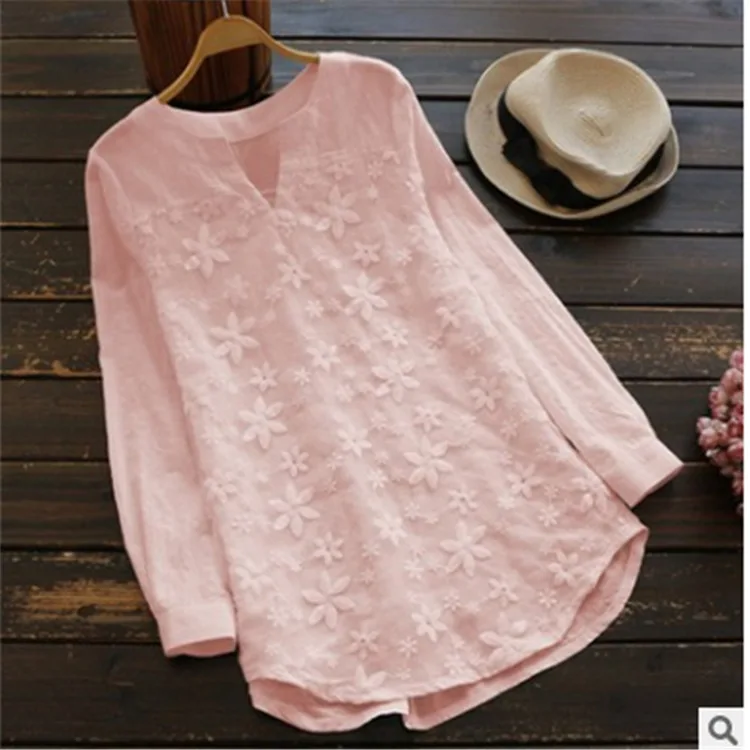 الخامس الرقبة التطريز بلوزة فضفاضة للنساء ، طويلة الأكمام ، بلوزات الدانتيل ، قميص أنيق ، حجم كبير ، S-5XL ، حار ، الصيف والخريف ، 2023