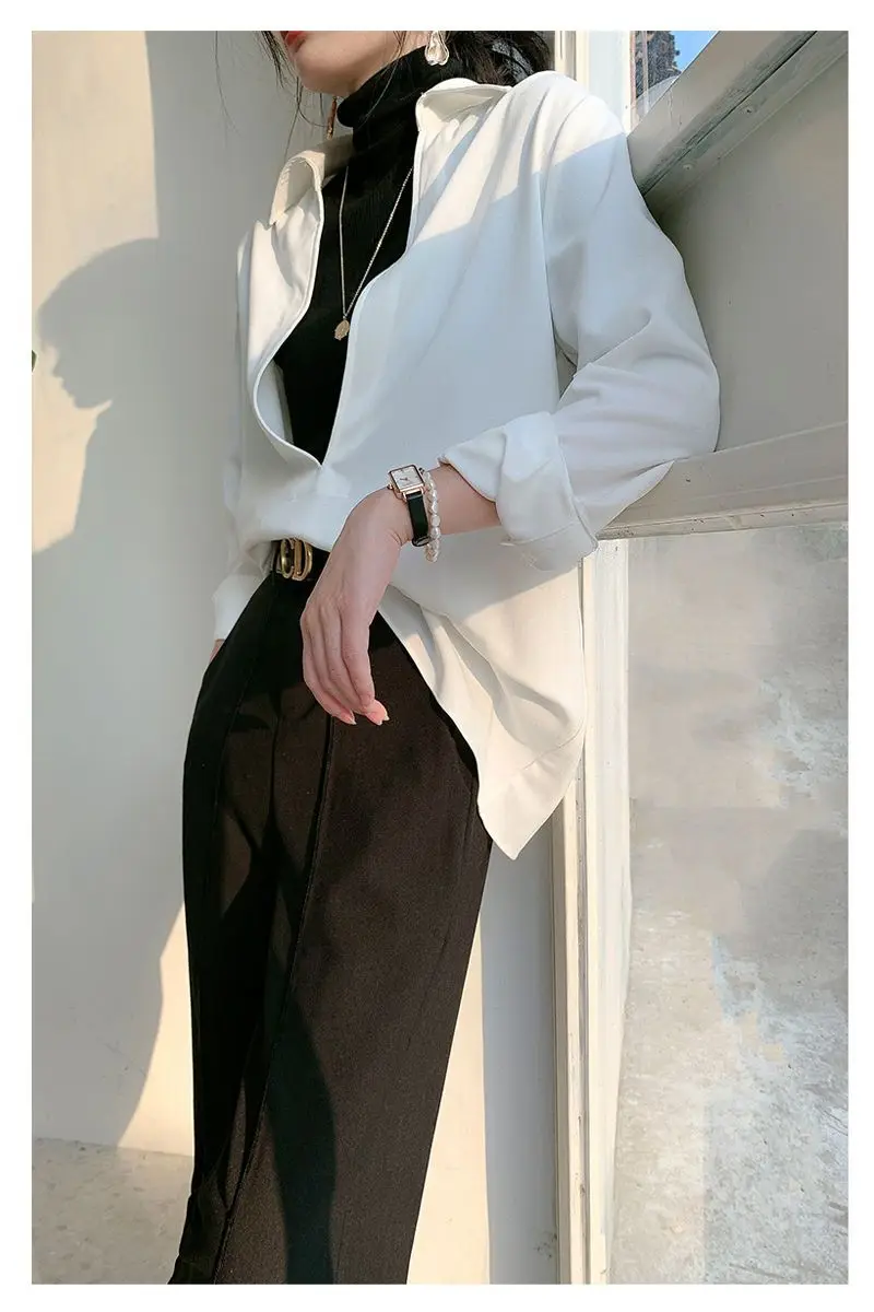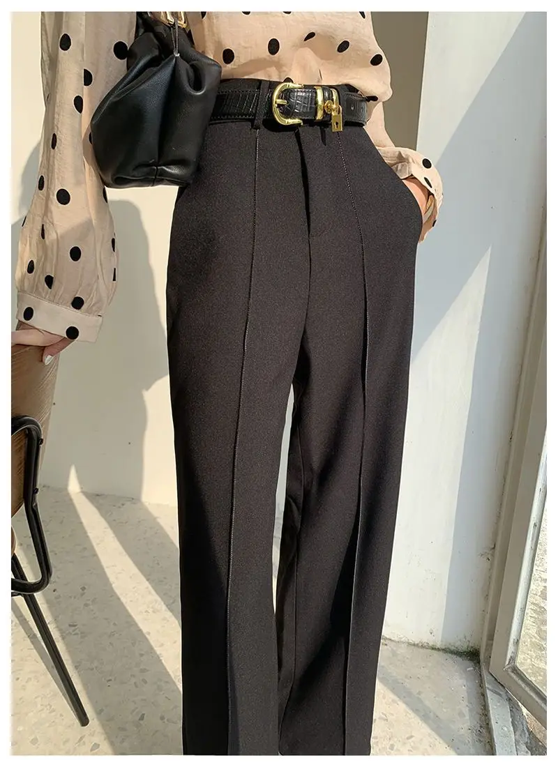 سراويل نسائية بخصر مرتفع بساق واسعة ، سراويل مستقيمة ، فضفاضة ، أحادية اللون ، أزياء كورية ، بدلة شارع نسائية ، الصيف