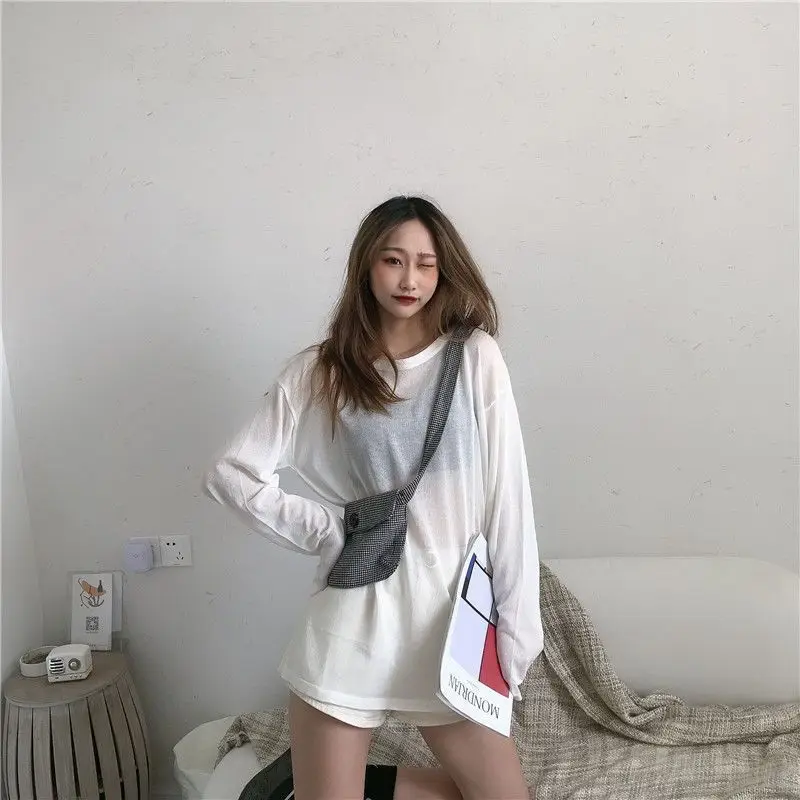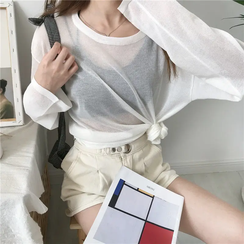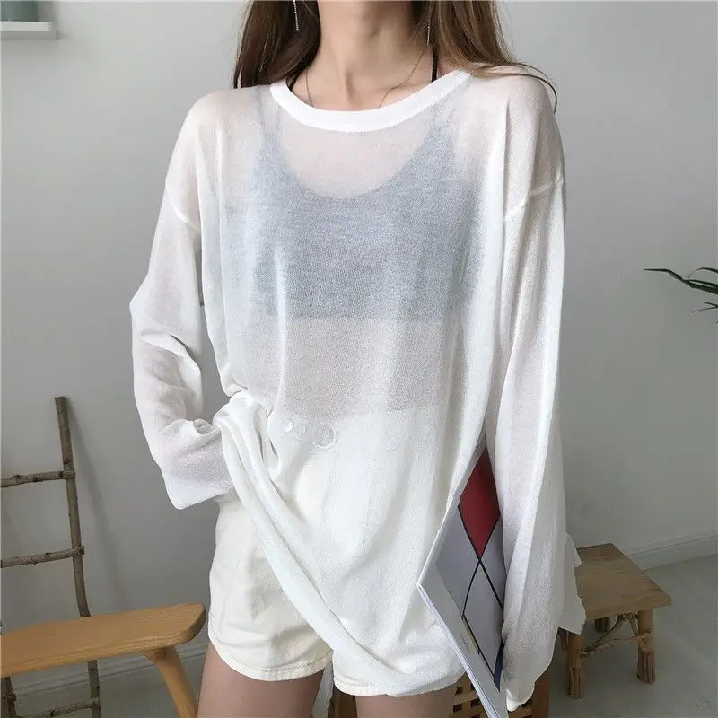 شير تي شيرت المرأة فضفاضة الكورية نمط الصيف الشمس واقية عادية بسيطة كل مباراة رقيقة كسول الموضة Ulzzang مزاجه الكلاسيكية 1