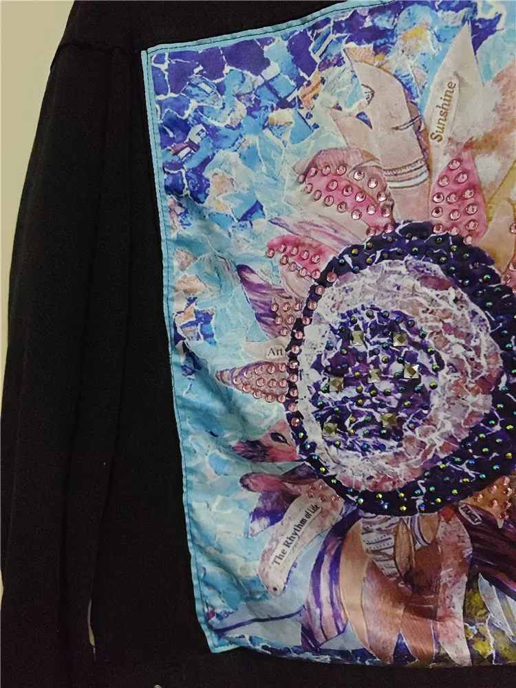 طباعة الأزهار يزين حجر الراين المرأة الدينيم الستر المؤنث ربيع الخريف بوهو الترتر معاطف طويلة الأكمام ملابس خارجية الإناث