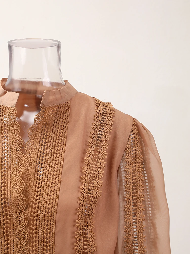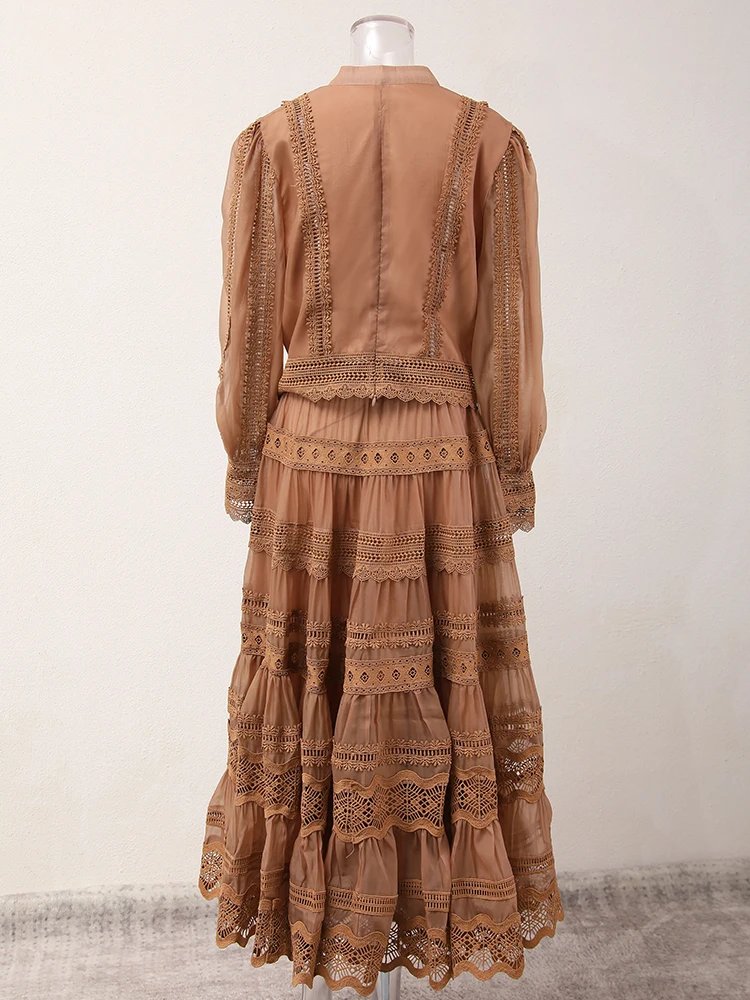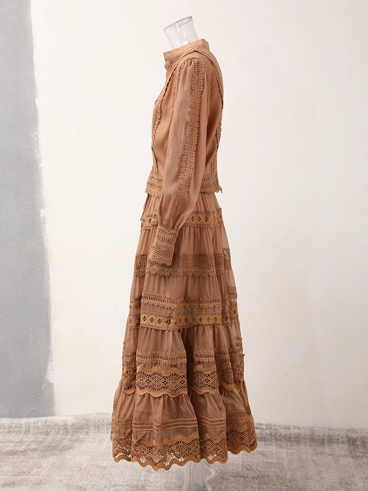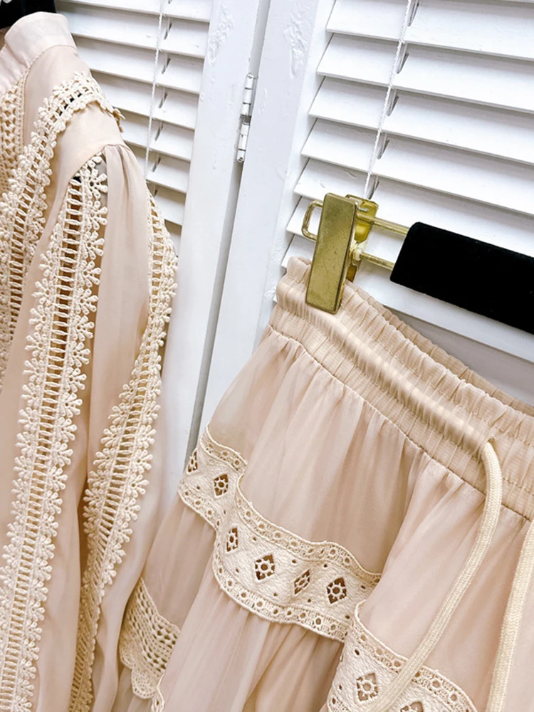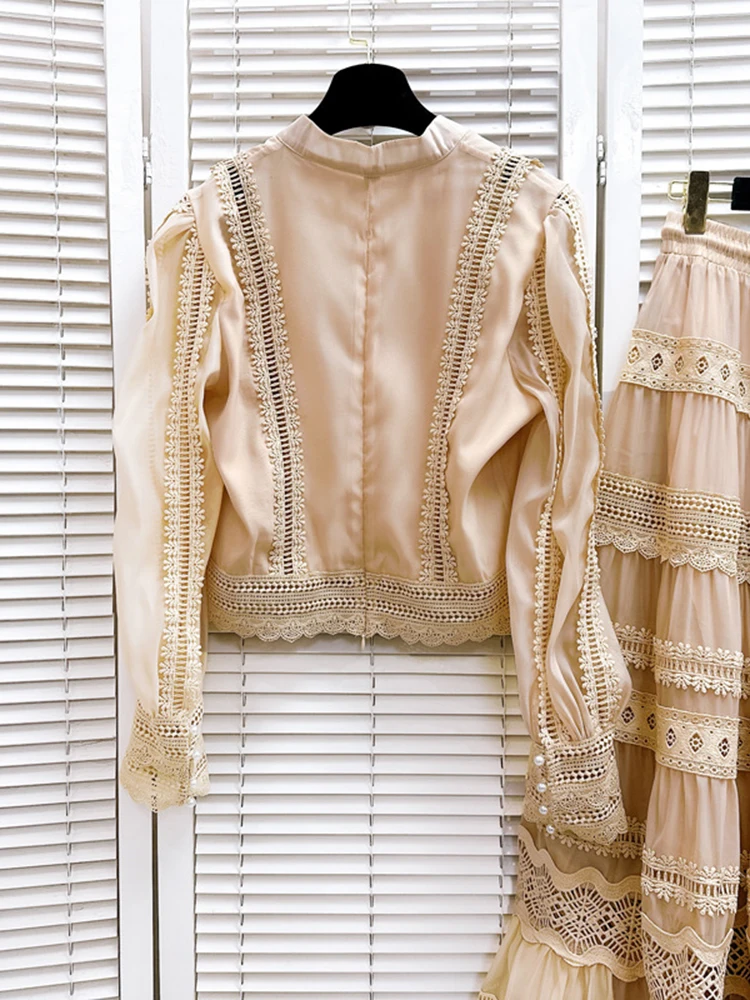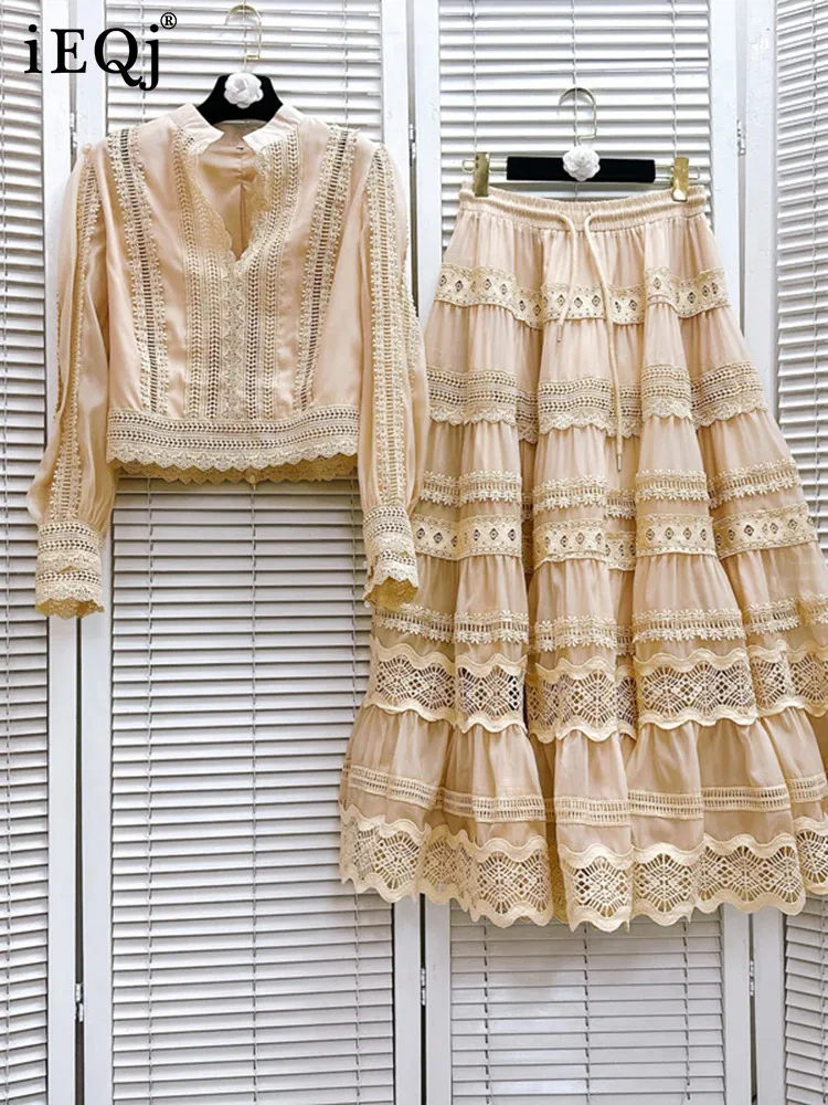 طقم مكشكش مطرز للنساء ، كم طويل ، علوي قائم ، تنورات بخصر مرتفع ، أطقم نسائية ، جديد ، ربيع ، سادة ، 3WQ9865
