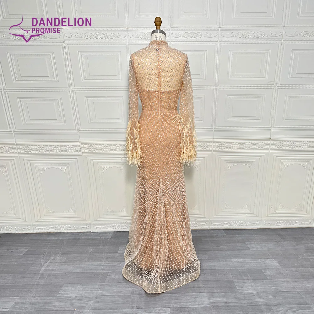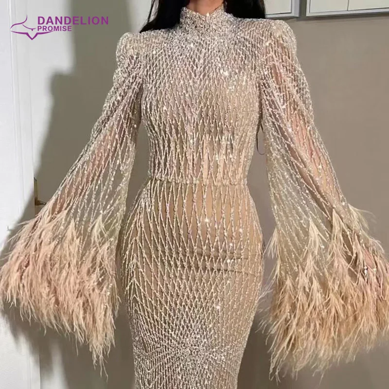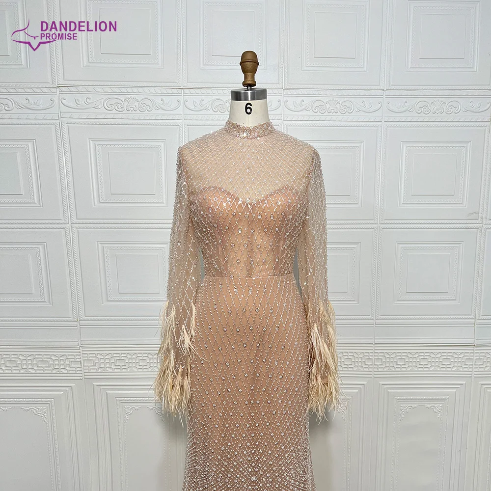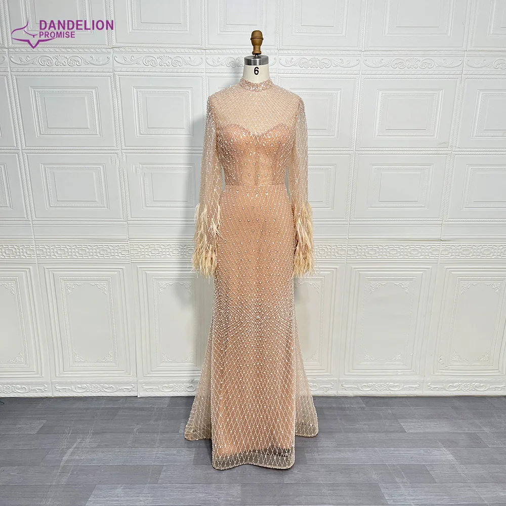 فساتين سهرة مطرزة بأكمام طويلة ورقبة عالية وزفاف عربي أنيق فساتين حفلات رسمية ريش دبي عارية فاخرة