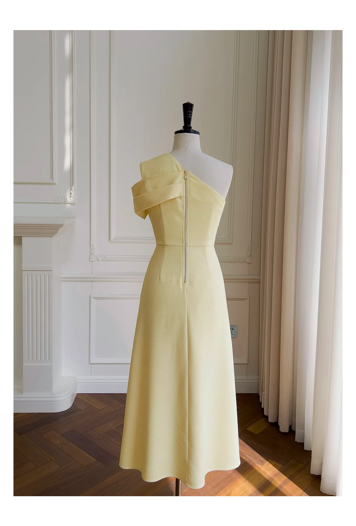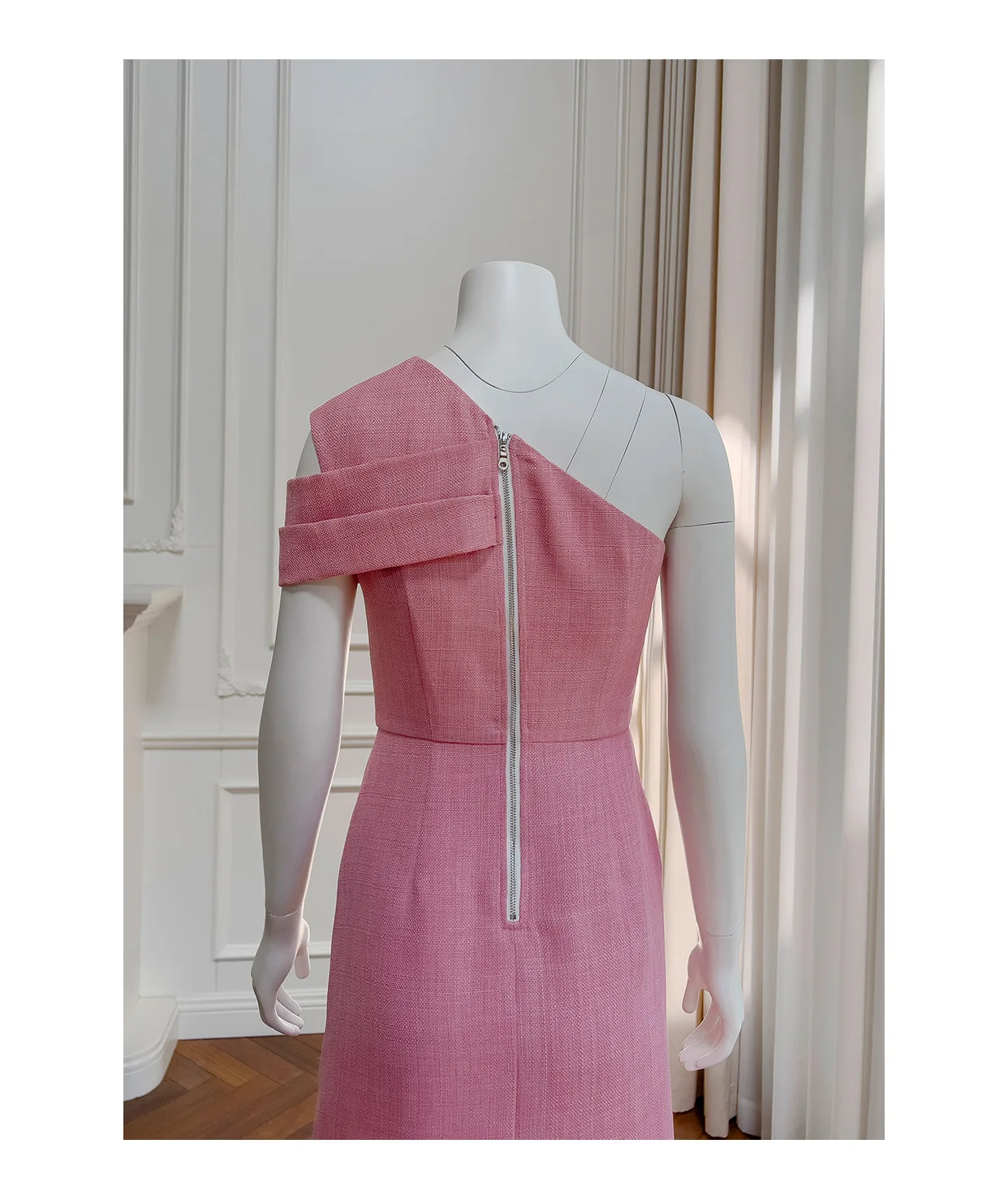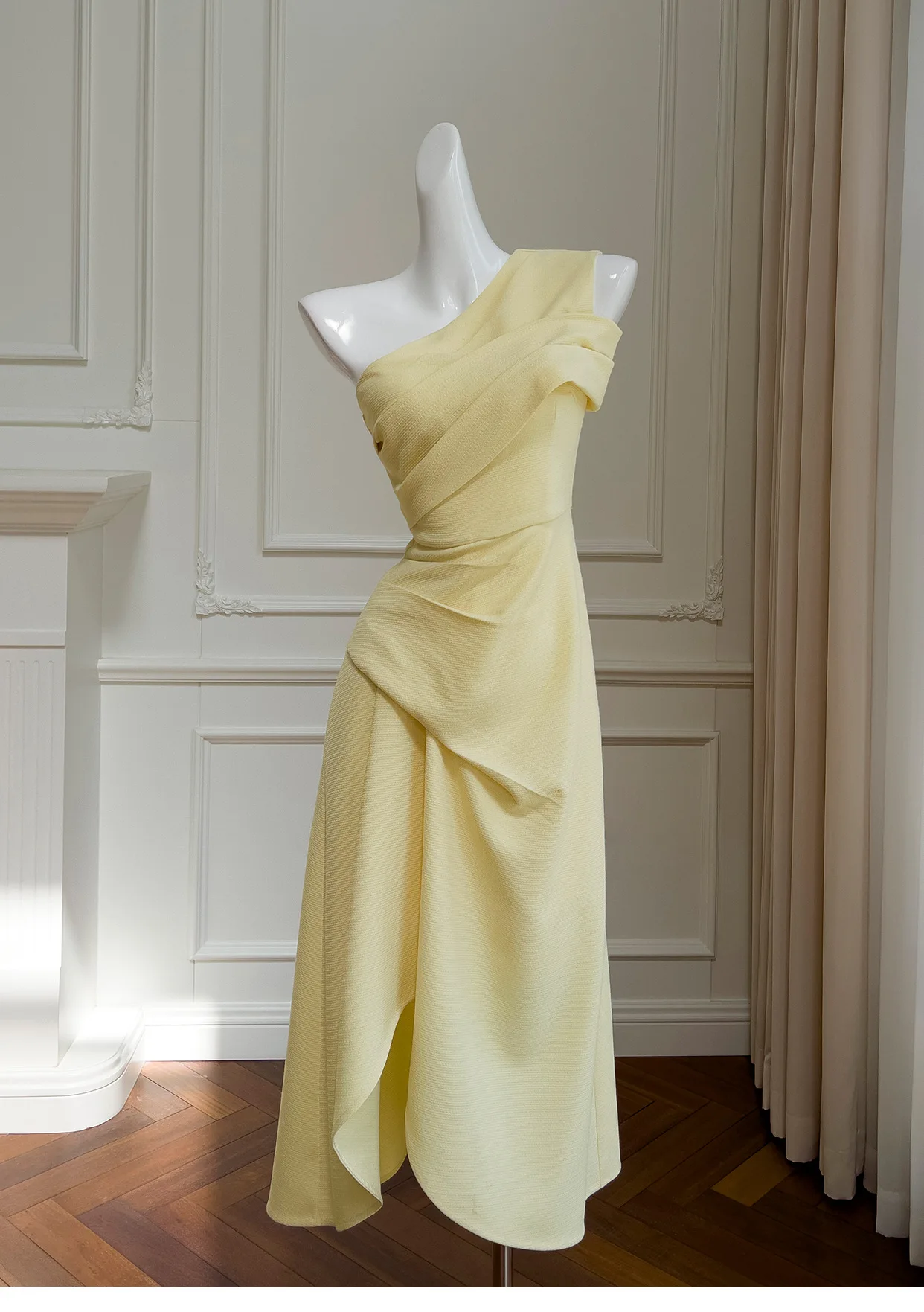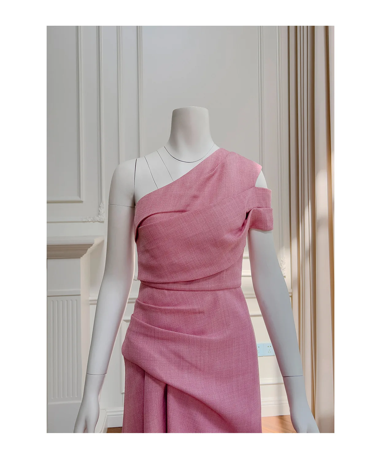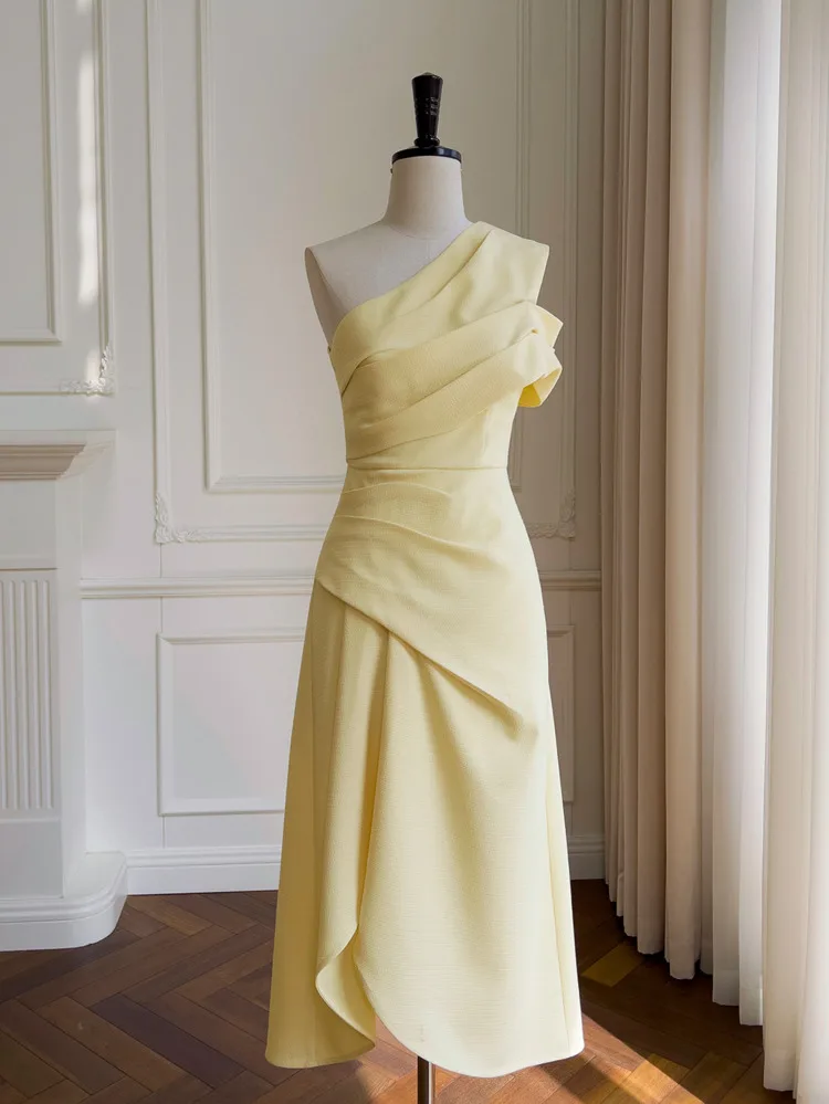 فساتين نسائية بكتف مائلة صلبة غير منتظمة ، خصر عالي بدون أكمام ، فستان نسائي أنيق ، جديد ، ربيع ، أو ، 3WM263