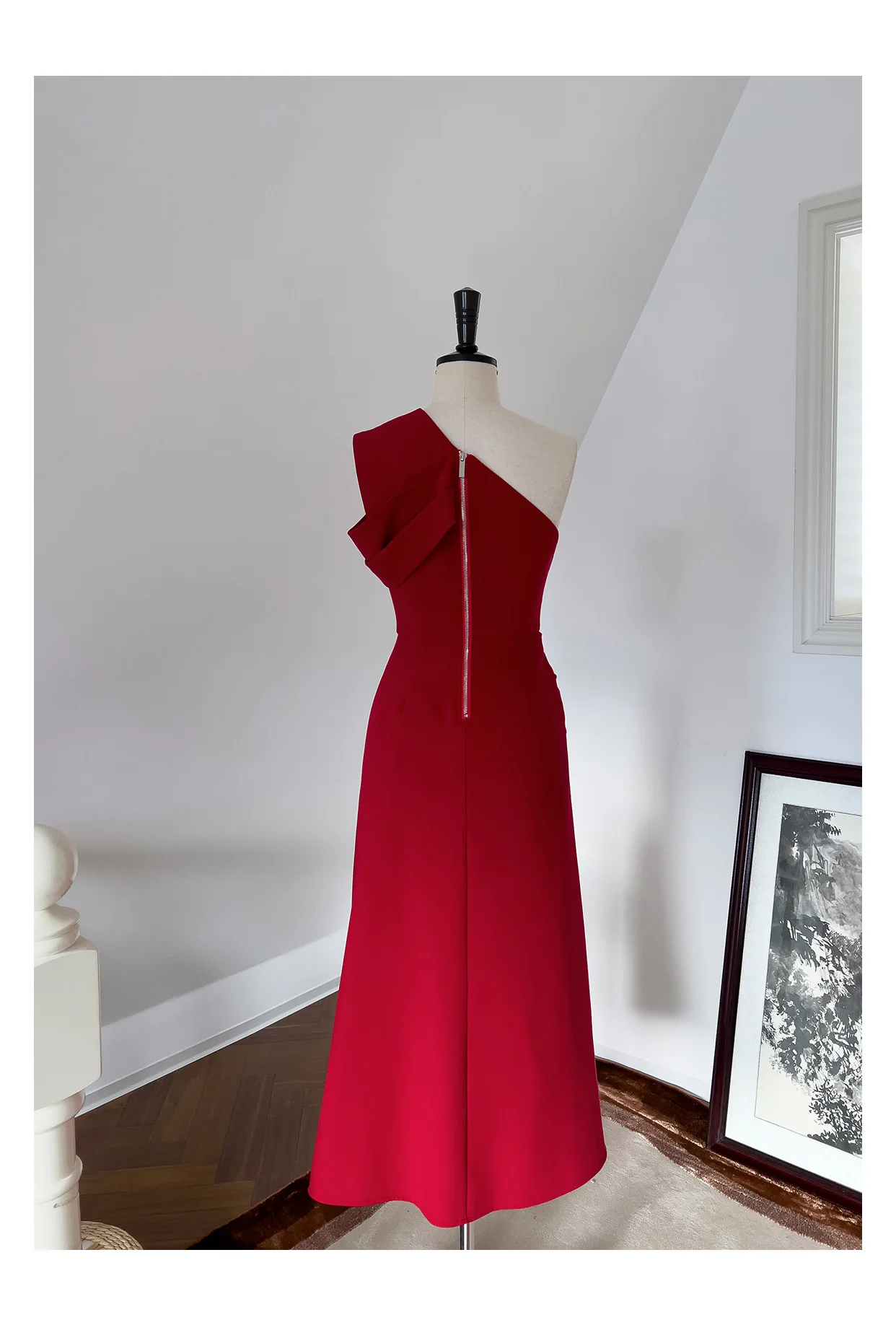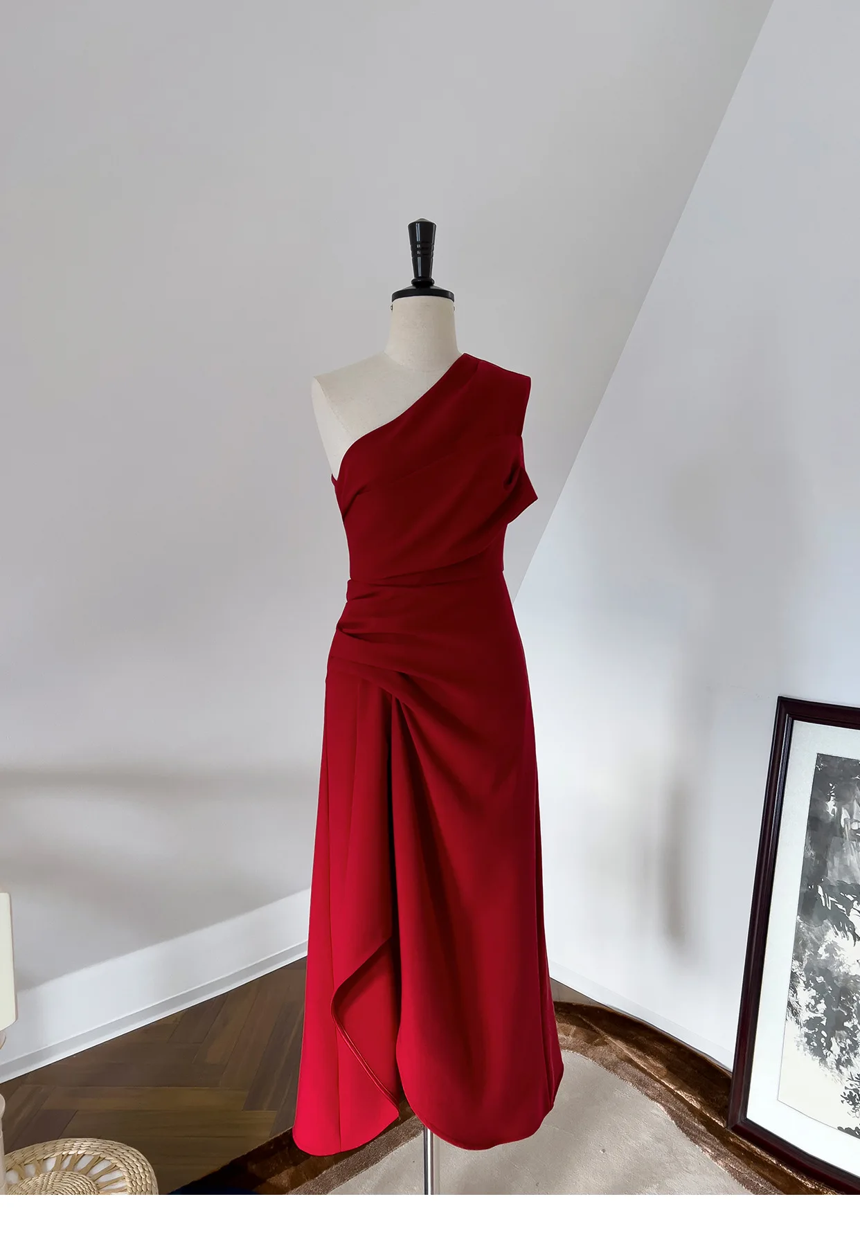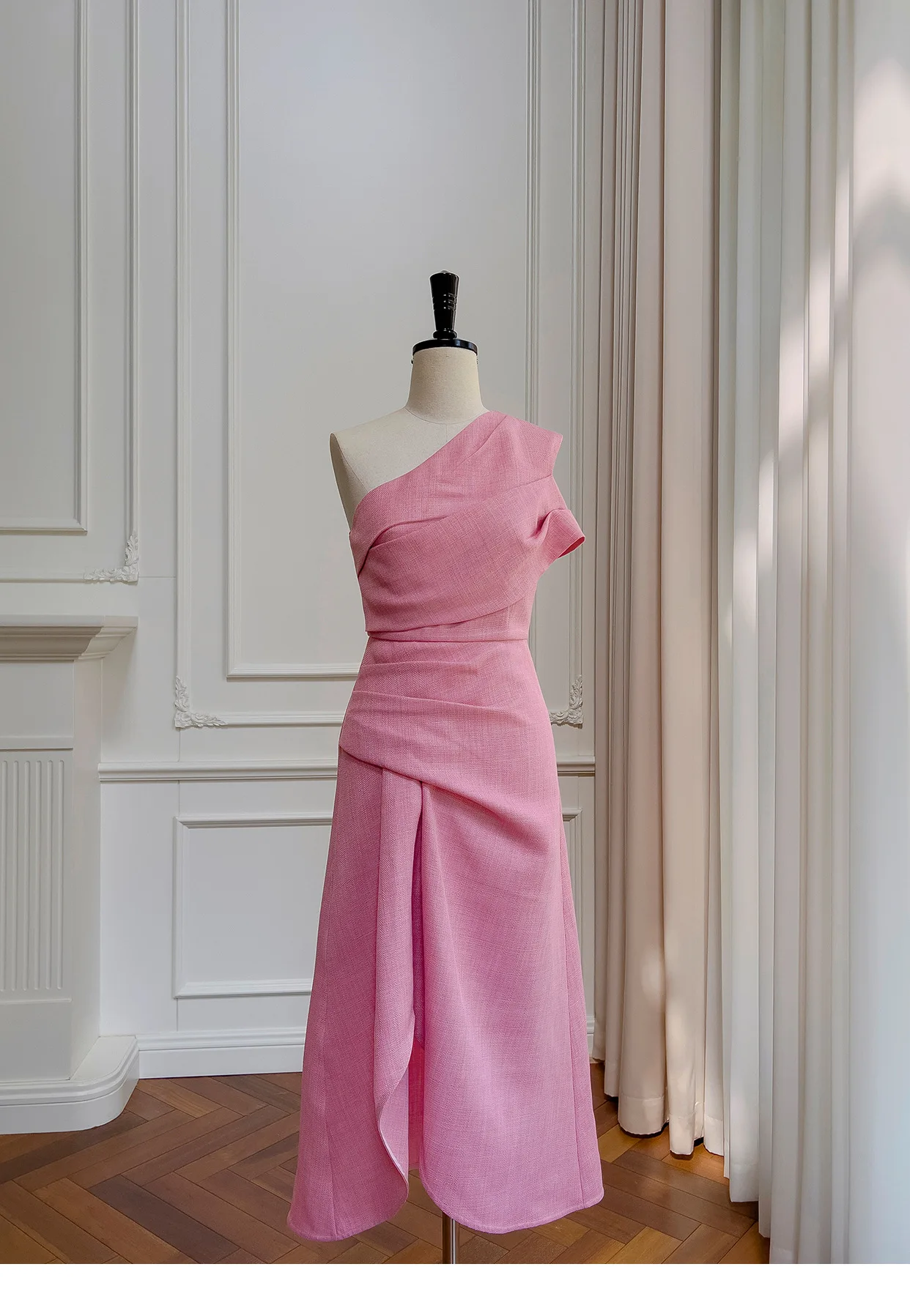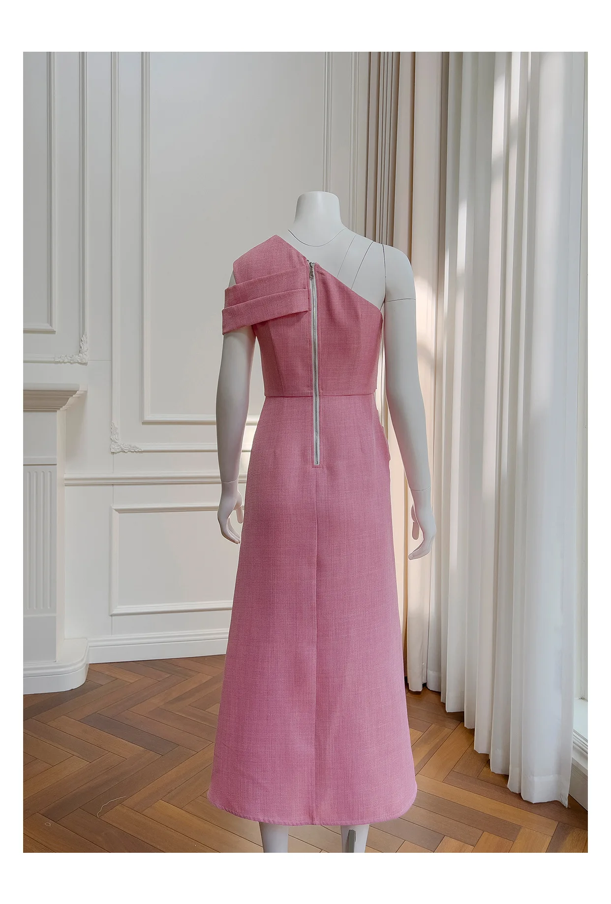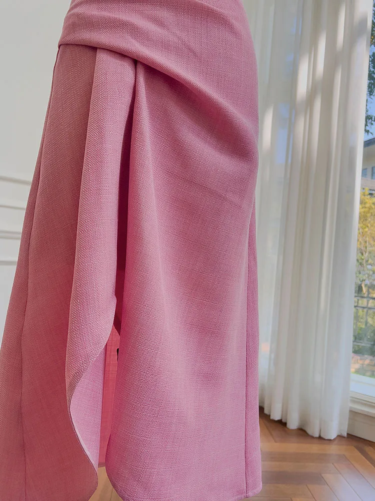 فساتين نسائية بكتف مائلة صلبة غير منتظمة ، خصر عالي بدون أكمام ، فستان نسائي أنيق ، جديد ، ربيع ، أو ، 3WM263