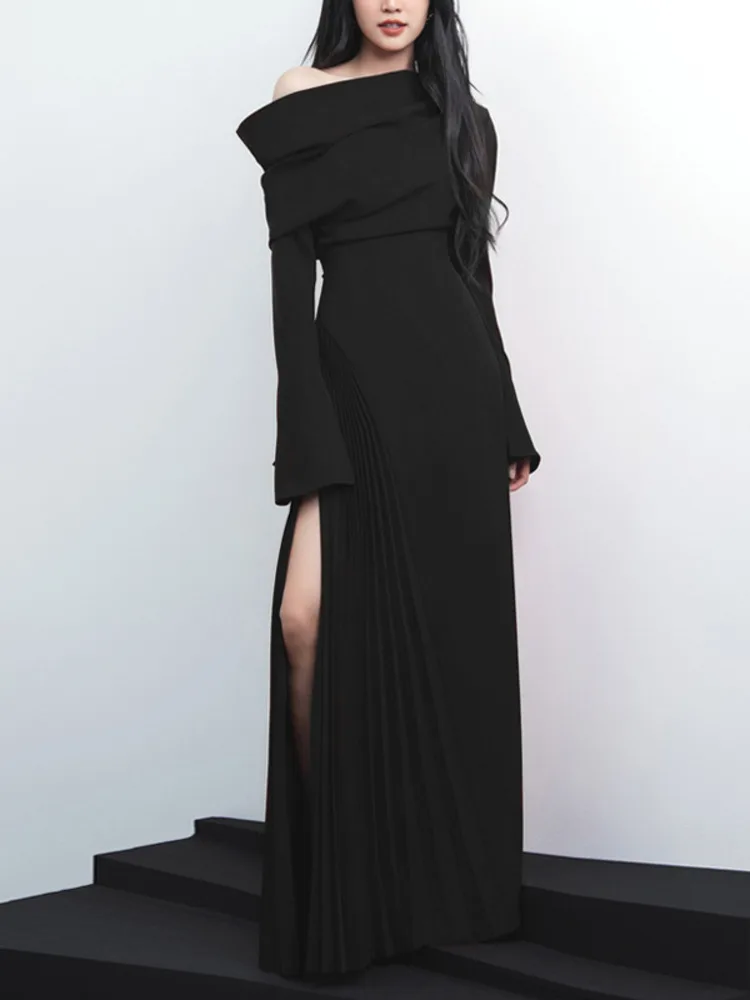 فستان أنيق برقبة مائلة للنساء ، أكمام طويلة ، مرقع بفتحة مبطنة ، فساتين سهرة ، صيف ، جديد ، من 13DB5142 1