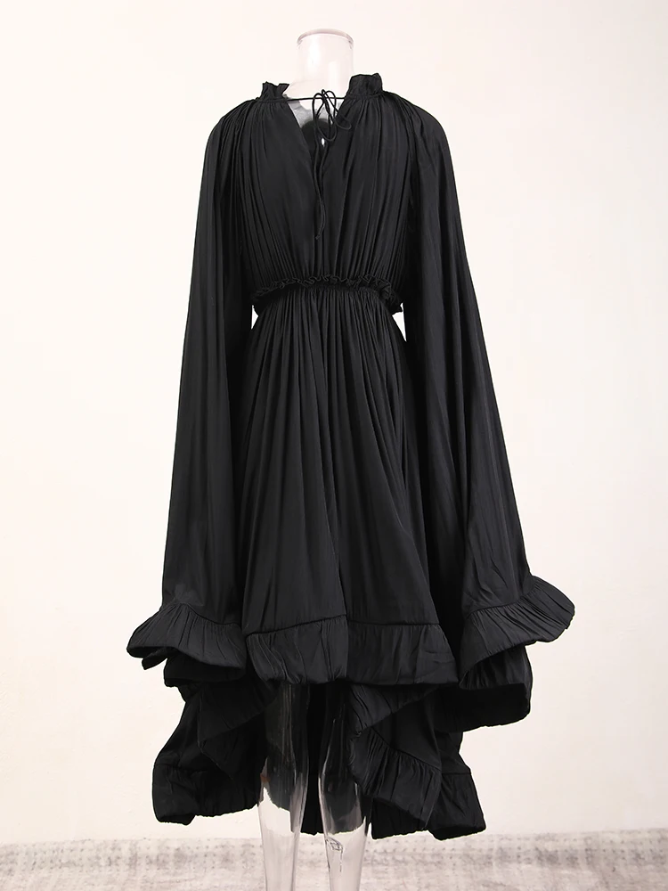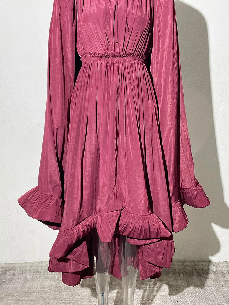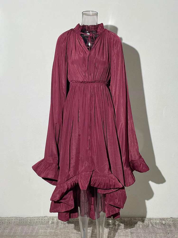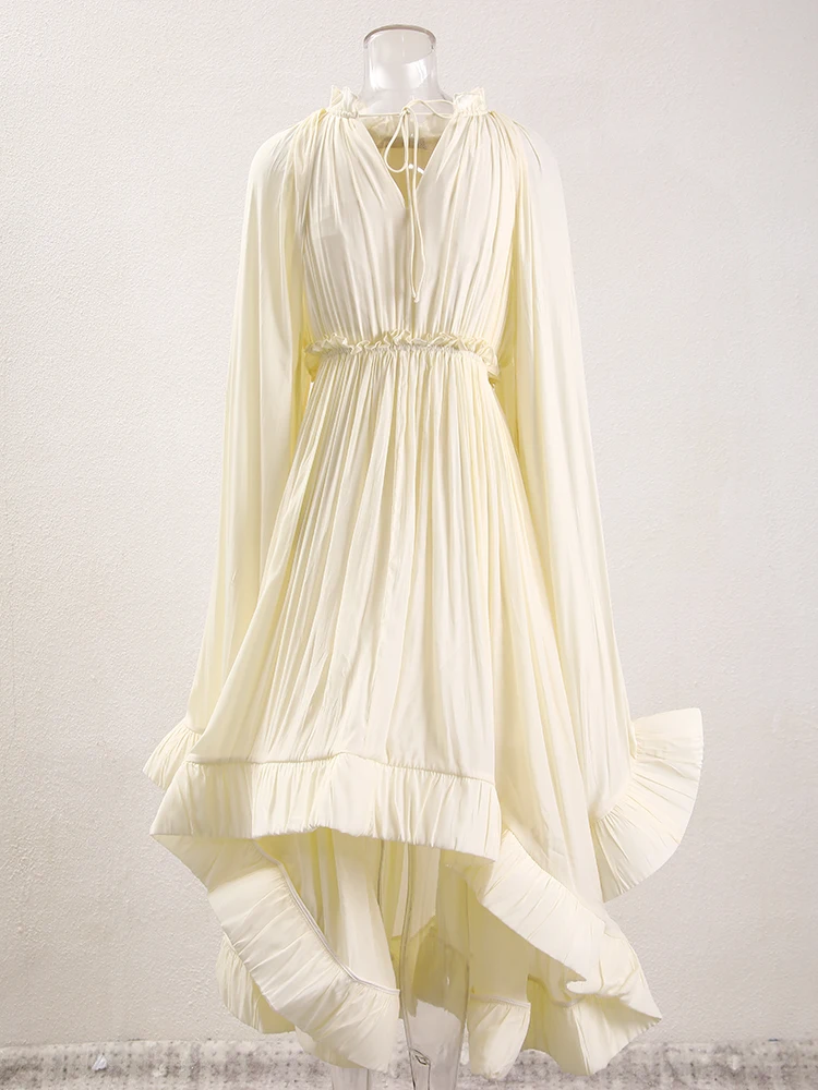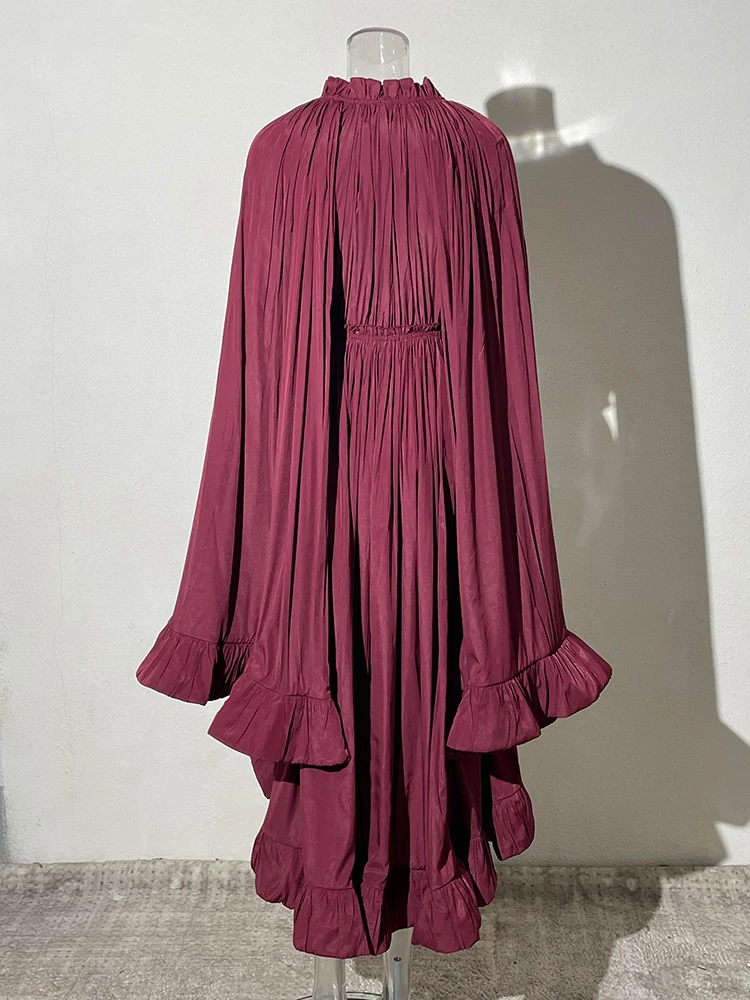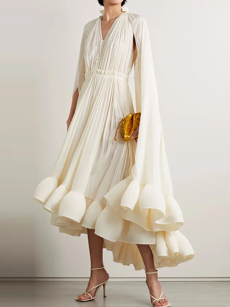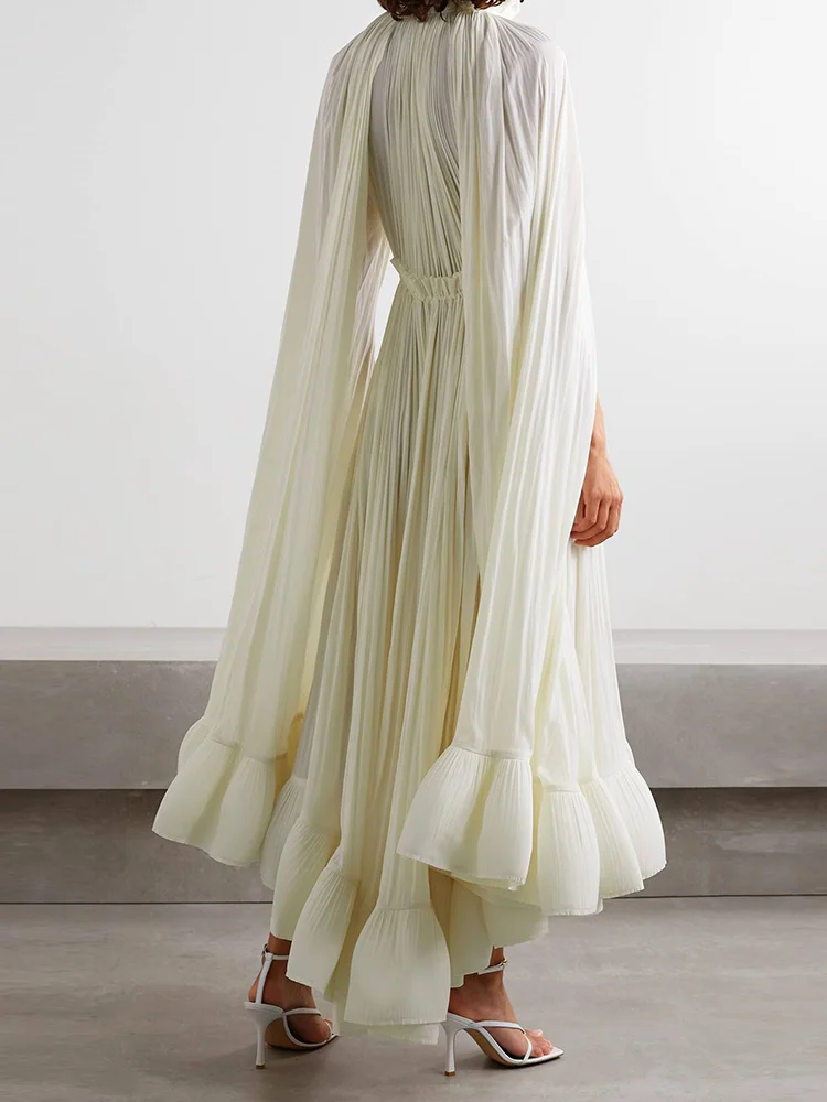 فستان طويل أنيق نسائي بكشكشة غير منتظمة ، أرجوحة كبيرة ، أكمام عباءة ، أربطة مقسمة ، ثنيات ، فستان حفلات ، جديد ،