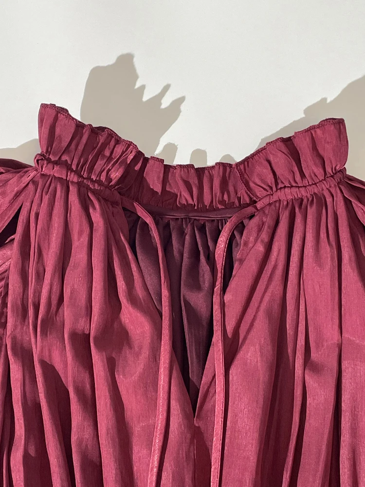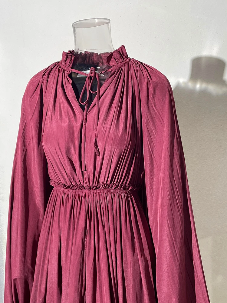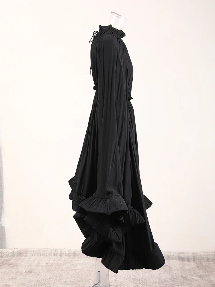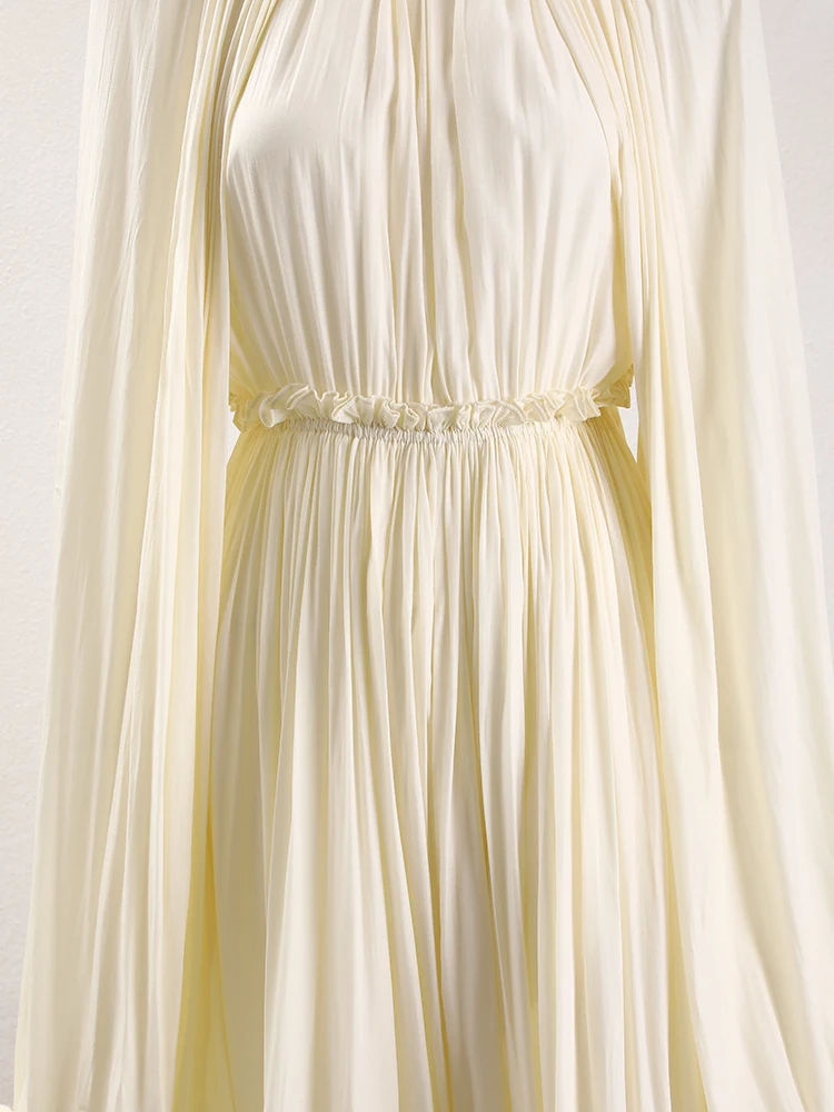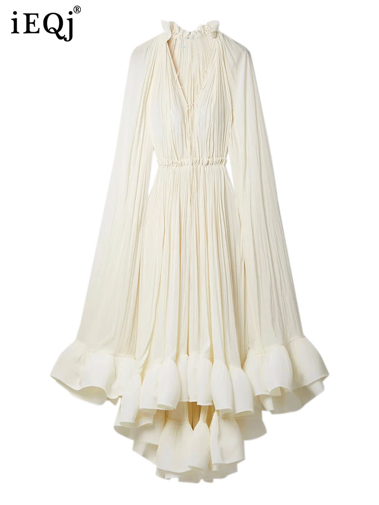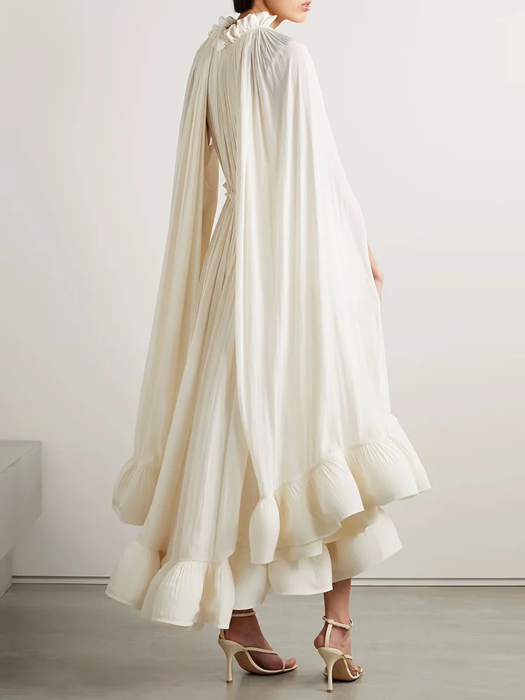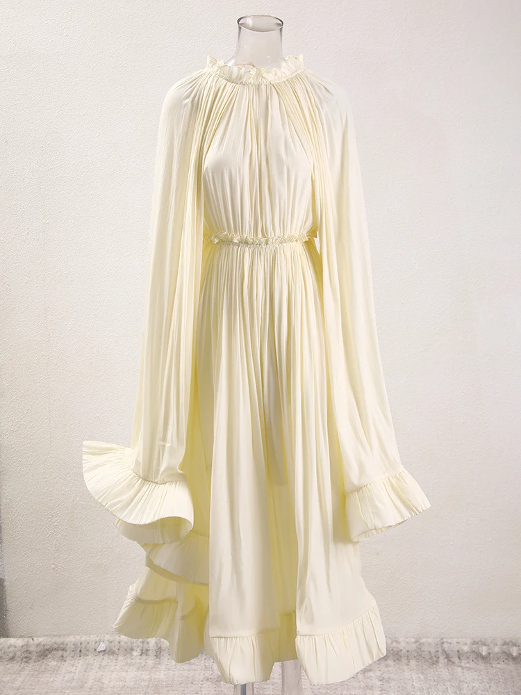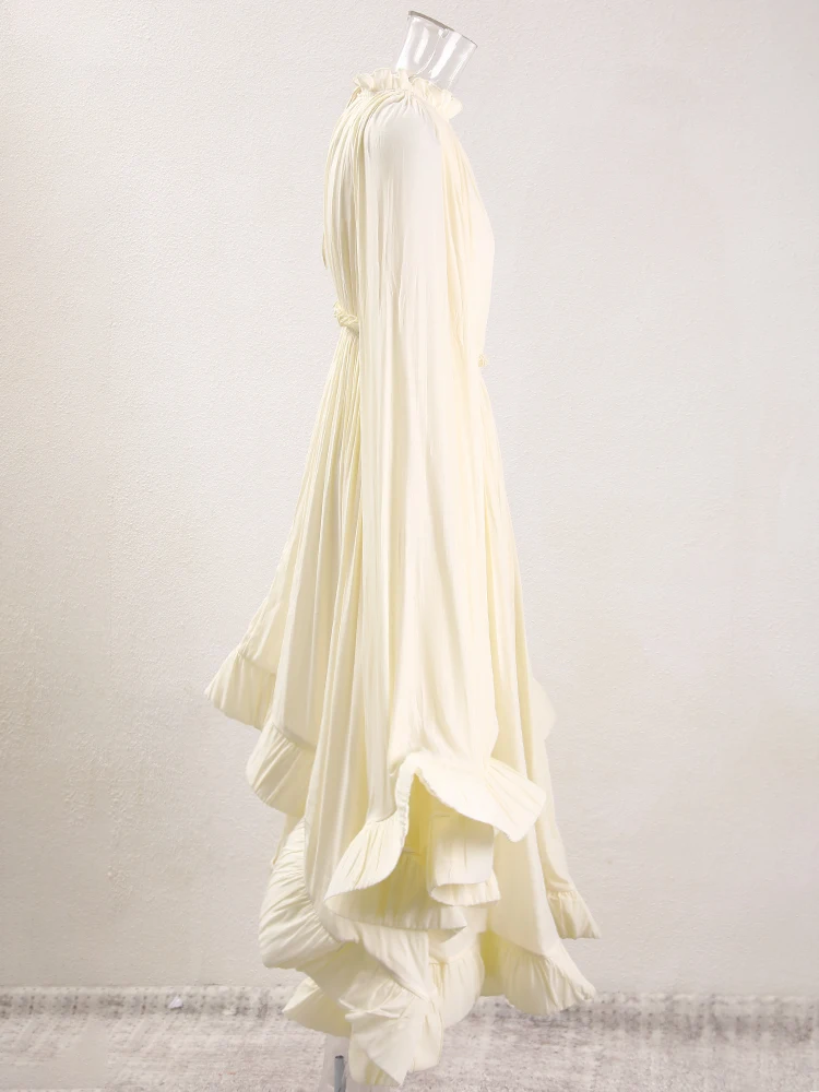 فستان طويل أنيق نسائي بكشكشة غير منتظمة ، أرجوحة كبيرة ، أكمام عباءة ، أربطة مقسمة ، ثنيات ، فستان حفلات ، جديد ،