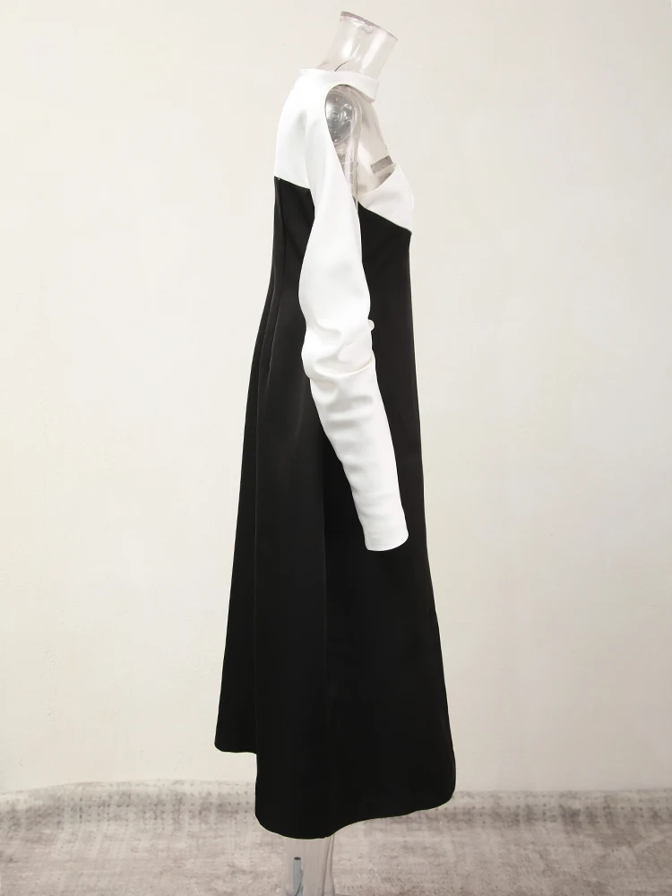 فستان نسائي أنيق بدون حمالة ، مكشوف الكتفين ، لون متباين ، حمالة رقبة غير متماثلة ، حفلة نسائية ، موضة صيفية ، فستان جديد ، 13DB4516 1