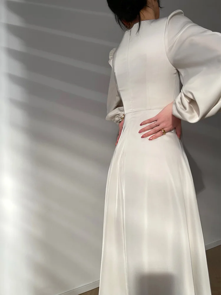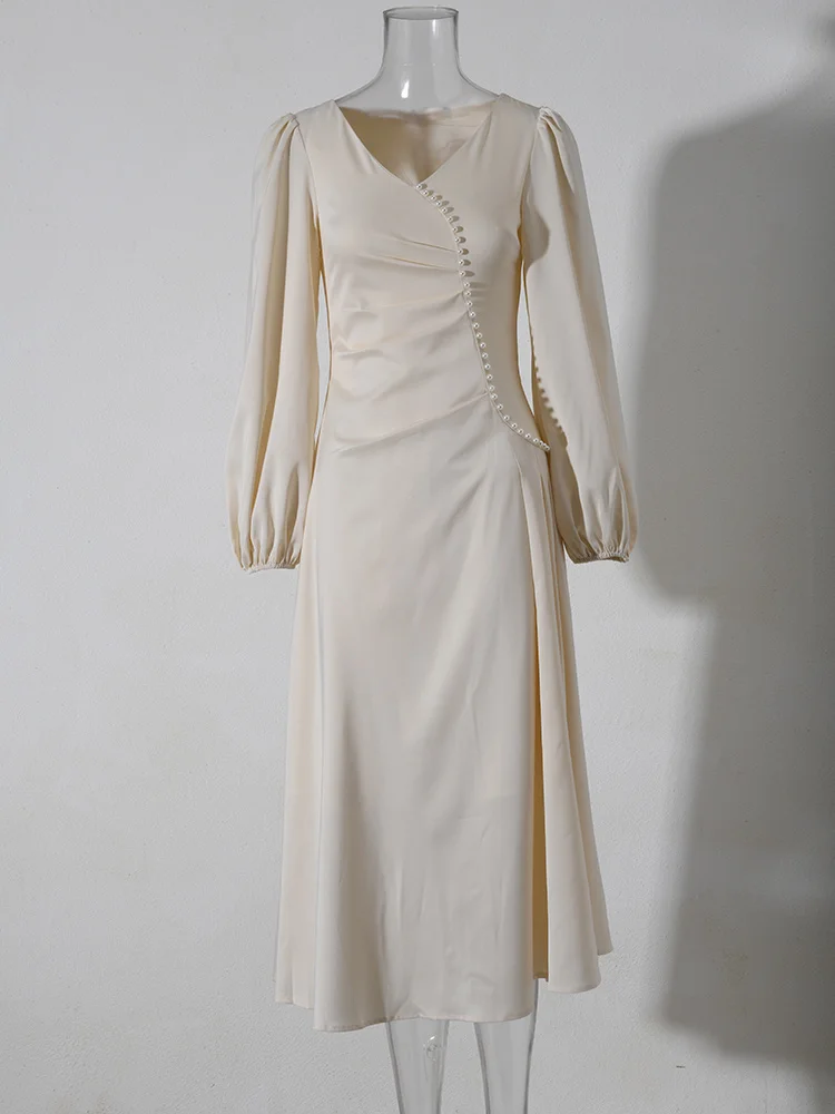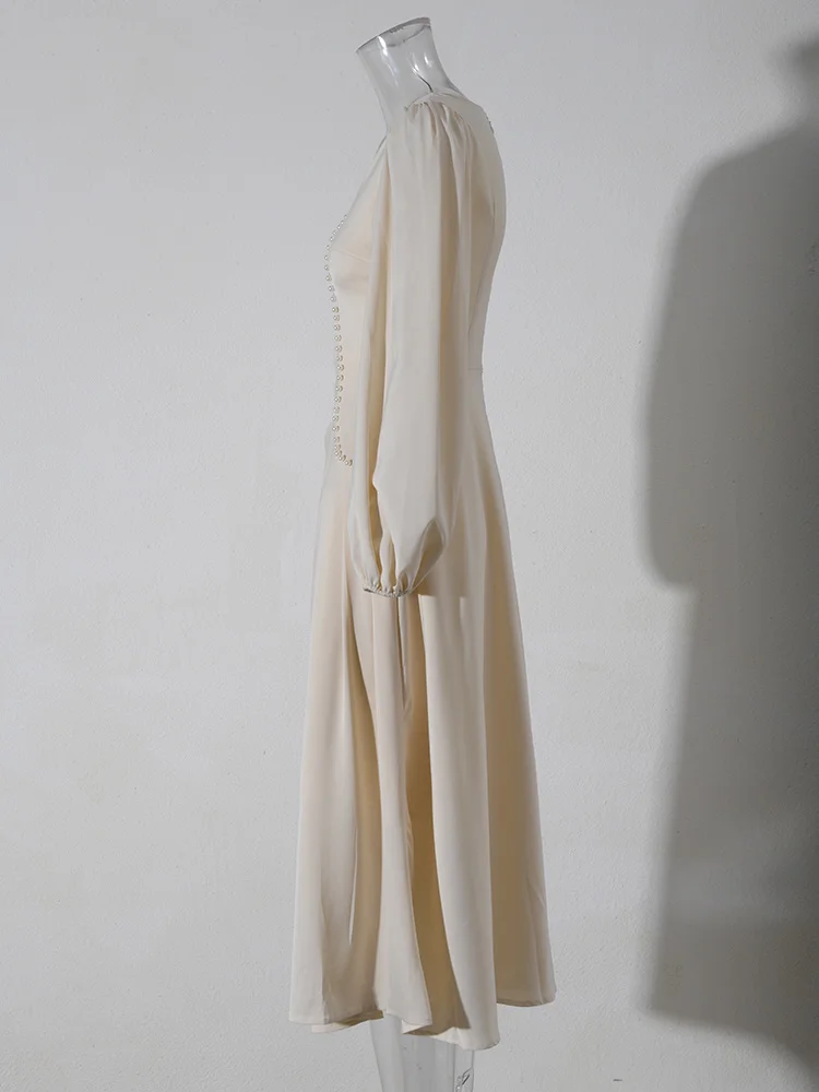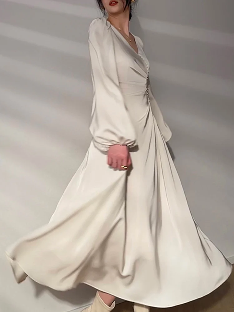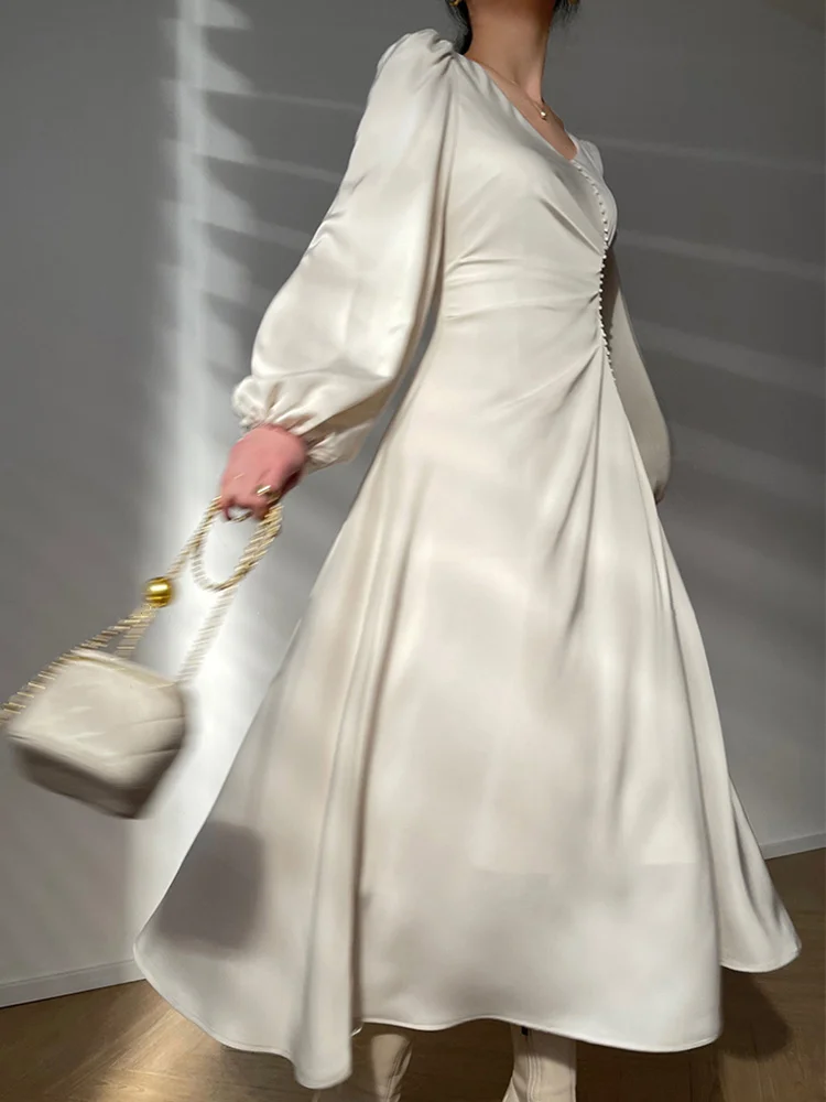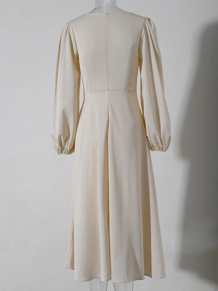 فستان نسائي كلاسيكي فرنسي من IEQJ بأكمام طويلة وفتحة رقبة على شكل حرف v مطرز بألوان سادة فساتين نسائية موضة صيف 2023 جديد 3W1191