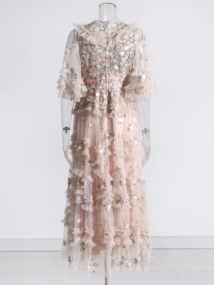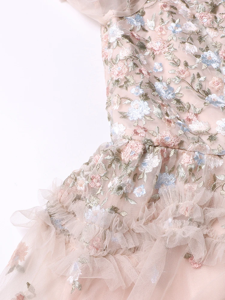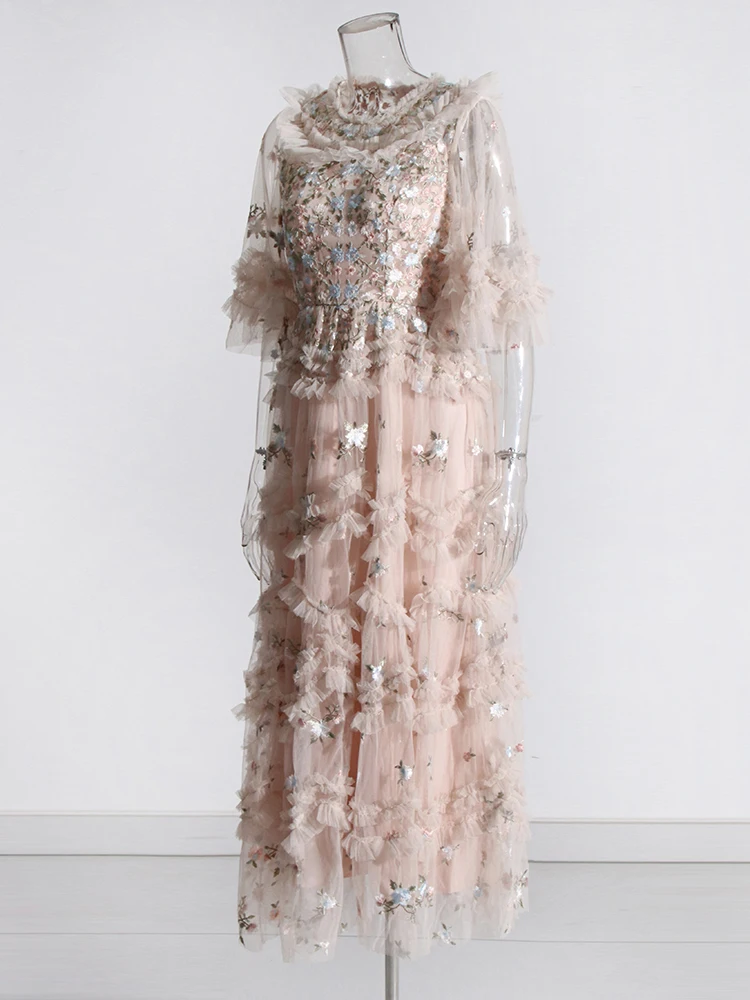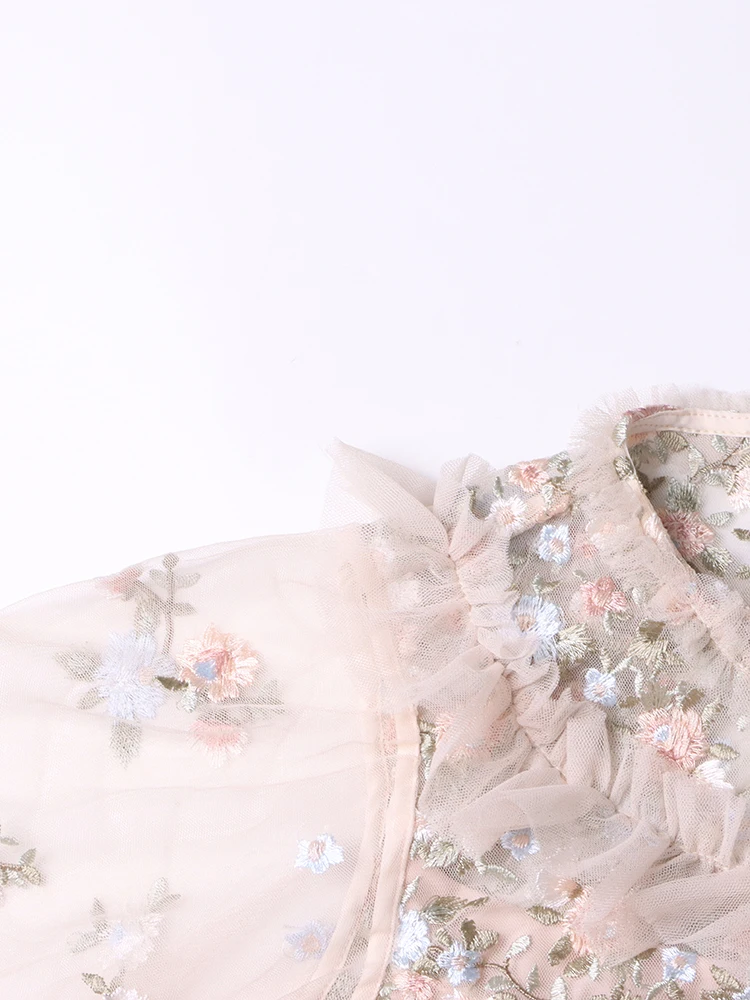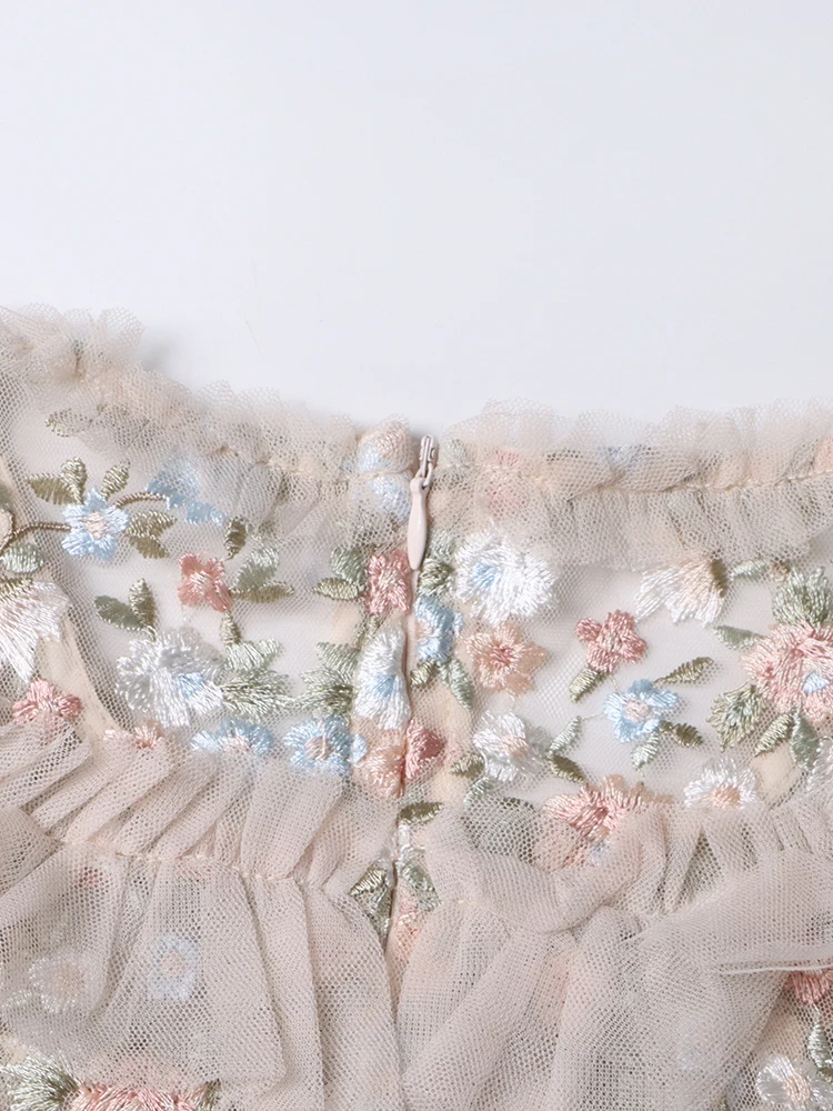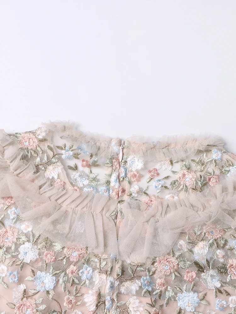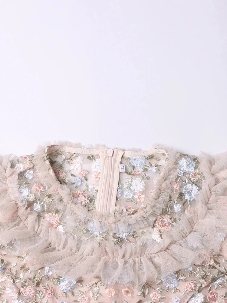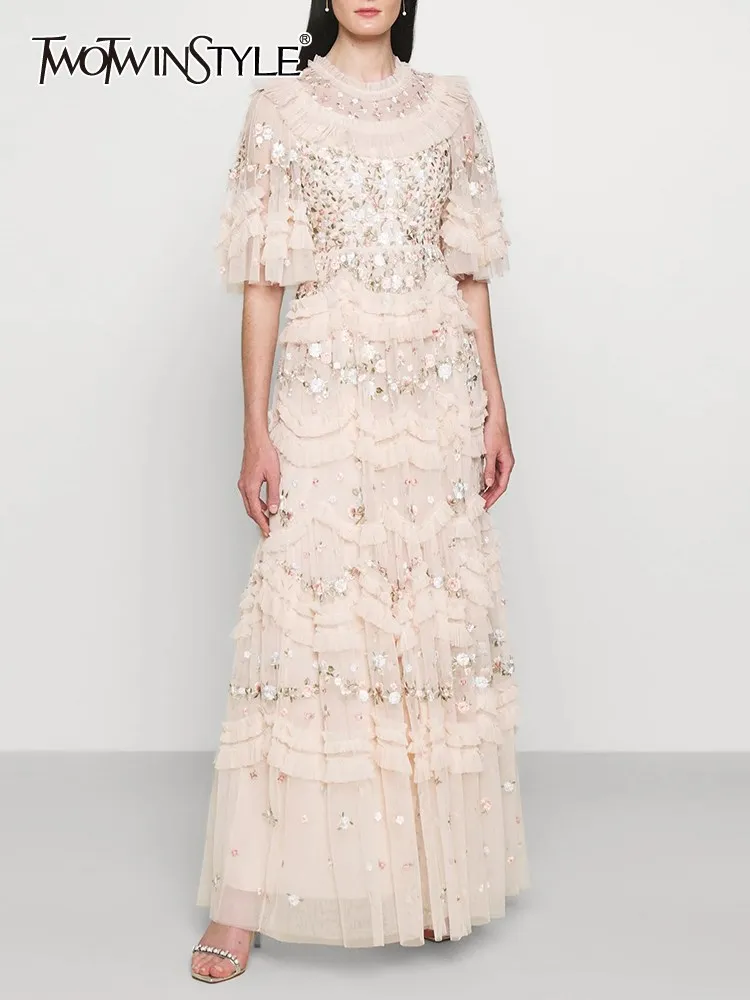 فستان نسائي مطرز شبكي من Twotwinstyle بأكمام مضيئة ورقبة مستديرة ، خصر عالي ، أنيق ، غير رسمي ، موضة