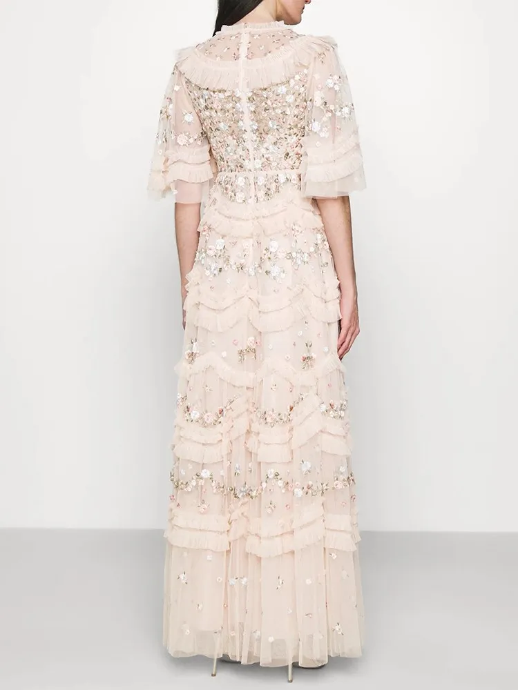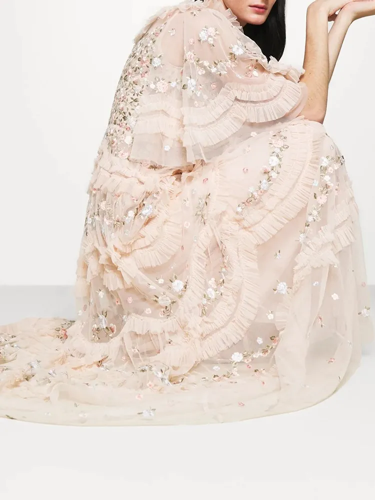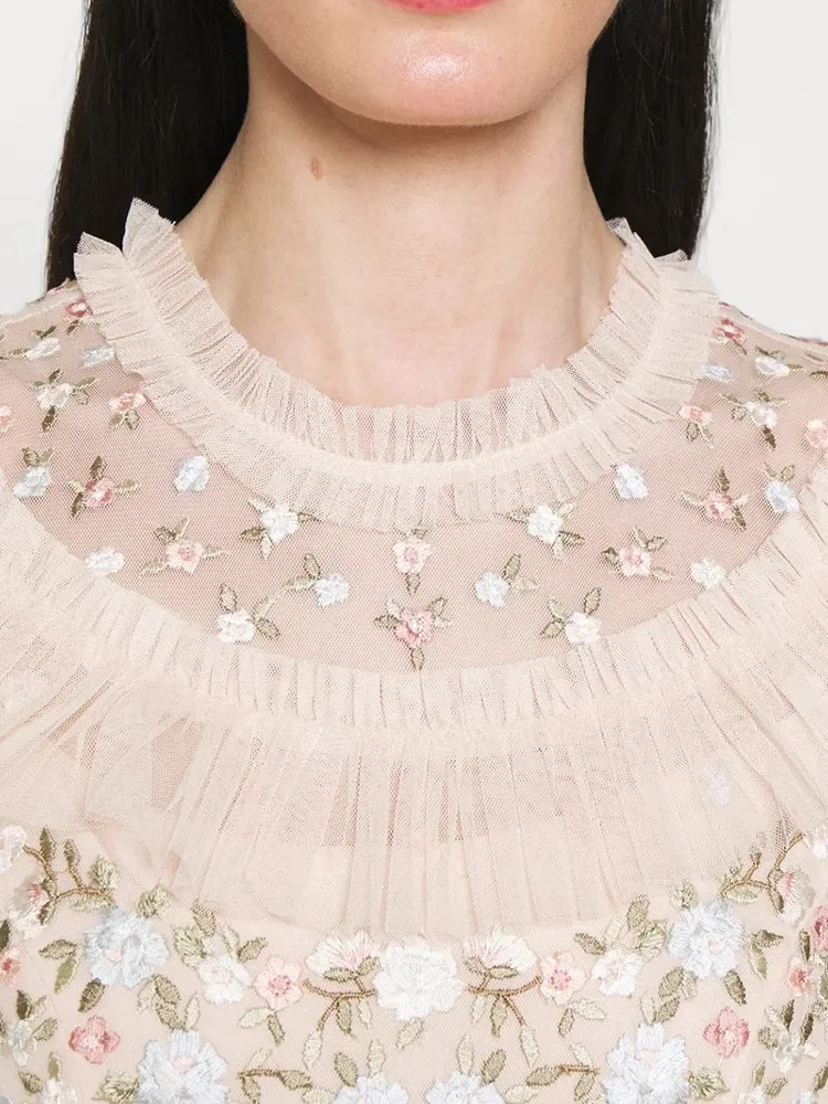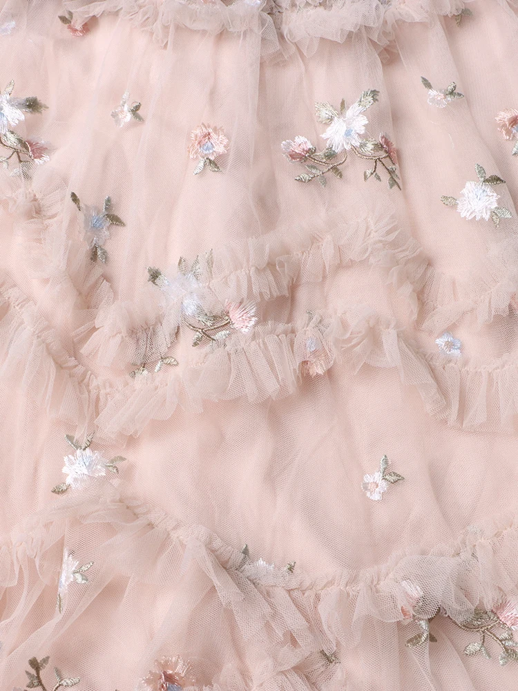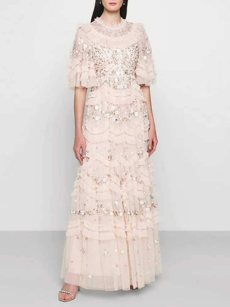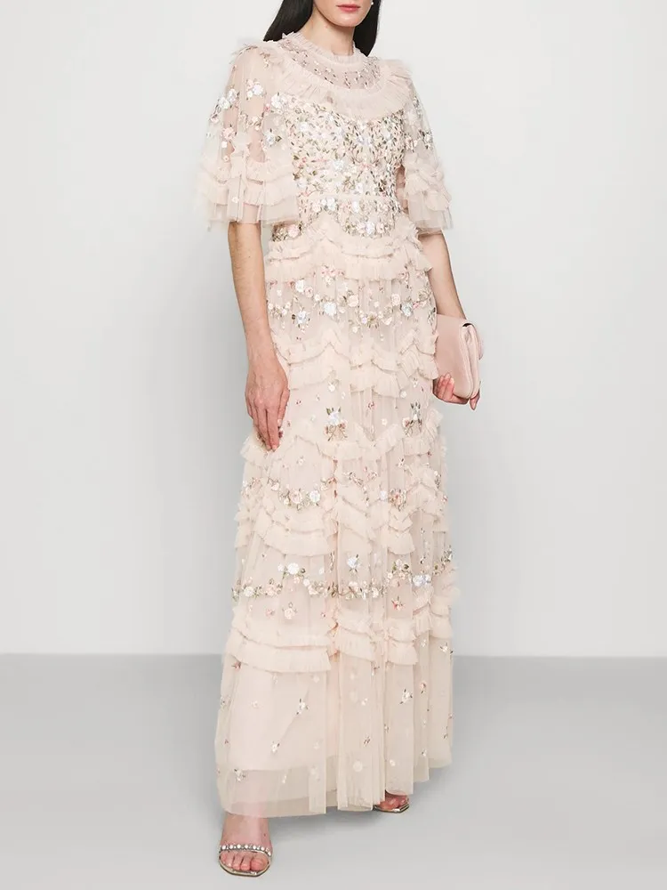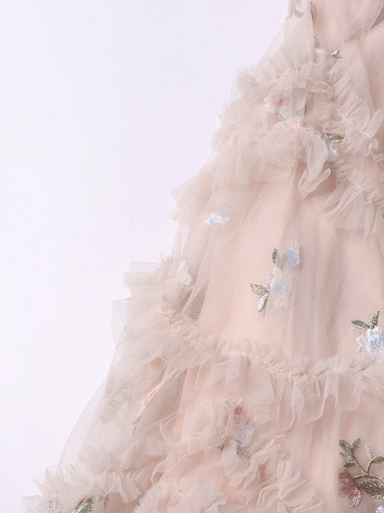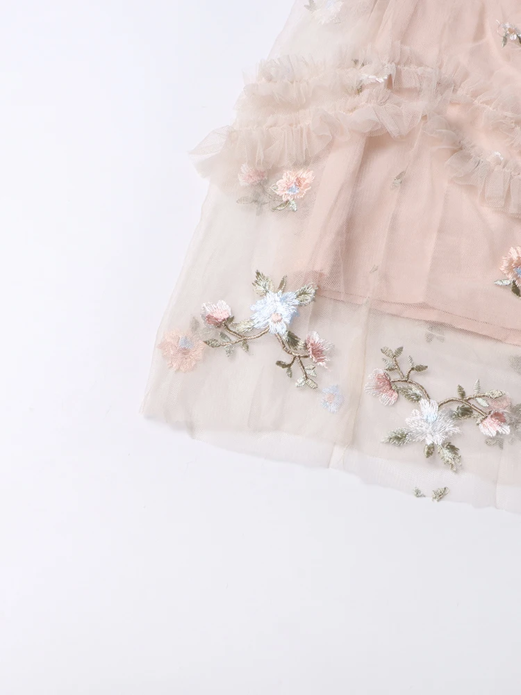 فستان نسائي مطرز شبكي من Twotwinstyle بأكمام مضيئة ورقبة مستديرة ، خصر عالي ، أنيق ، غير رسمي ، موضة