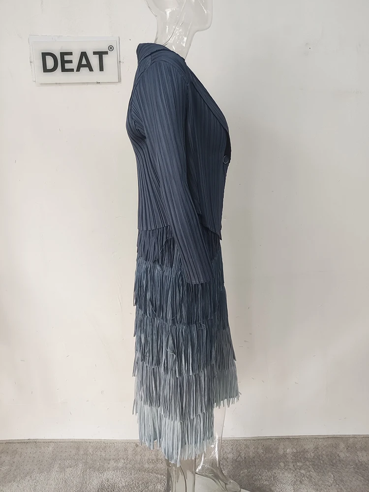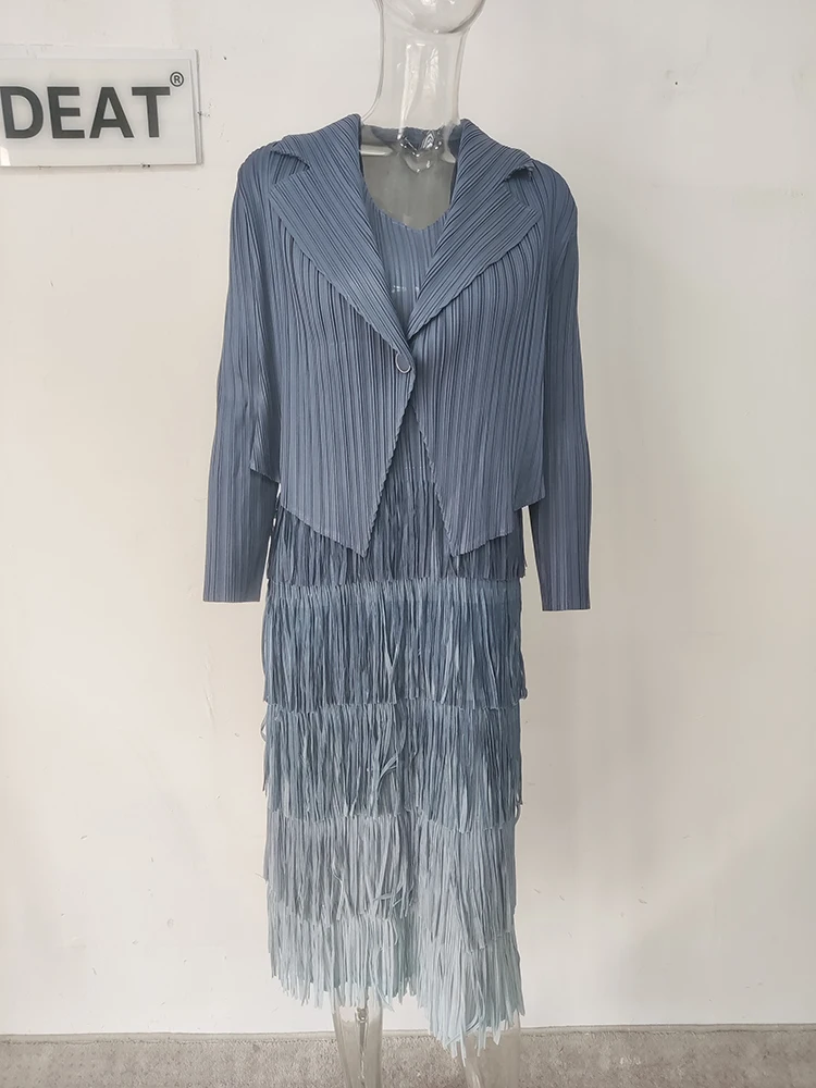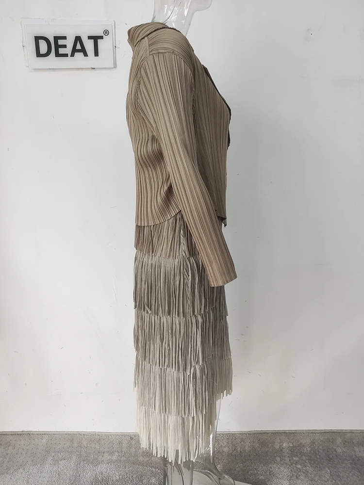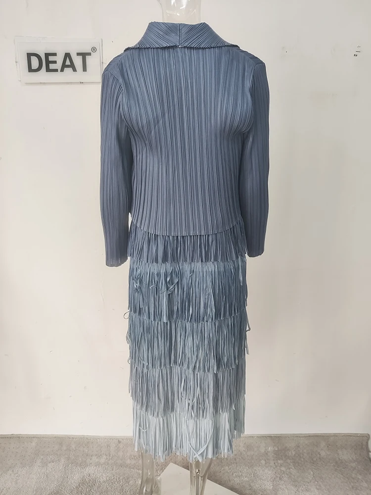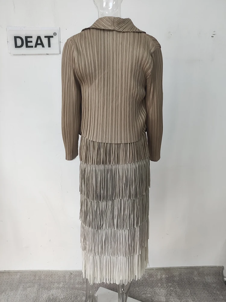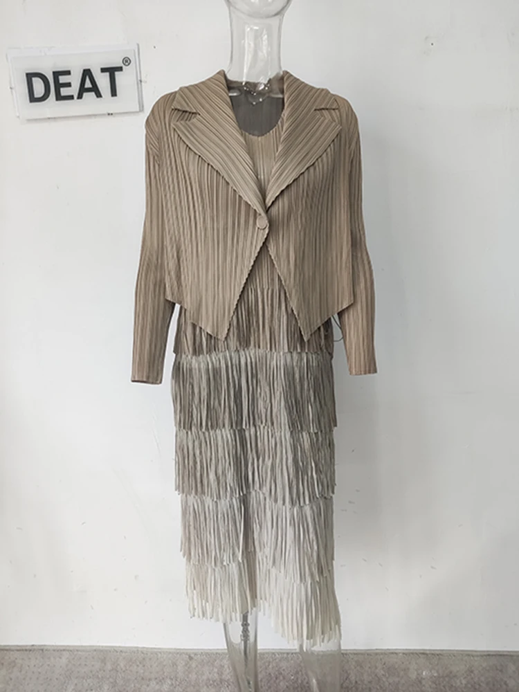 DEAT-معطف نسائي مطوي وفستان شرابة مقسم ، ستايل أنيق ، لون سادة ، قماش فضفاض نسائي ، جديد ، خريف ، 15KB4703 ، طقم 2 قطعة ، 2023