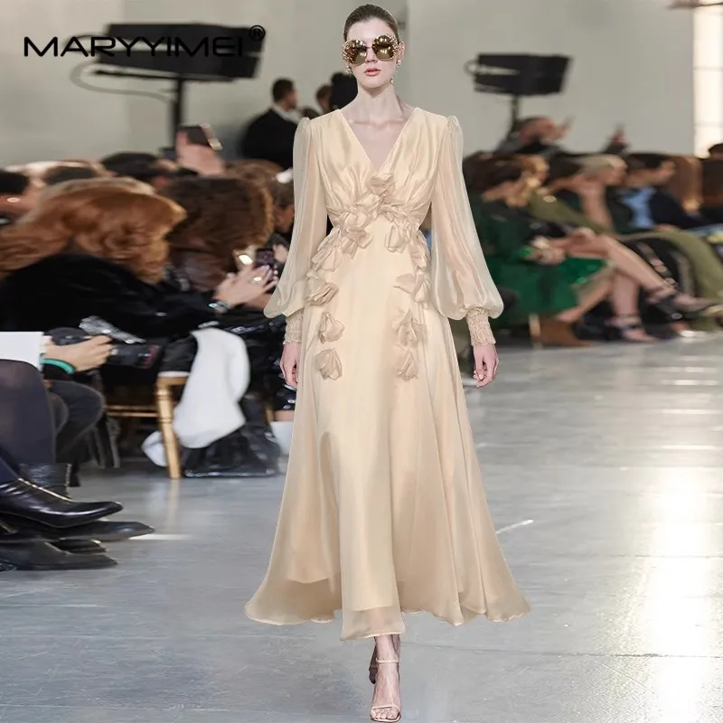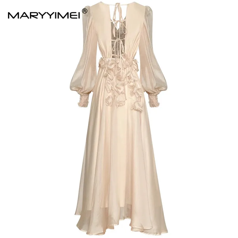 MARYYIMEI الخريف المرأة فستان موضة ضمادة عارية الذراعين الخامس الرقبة فانوس كم زين مثير حفلة أنيقة عطلة فساتين