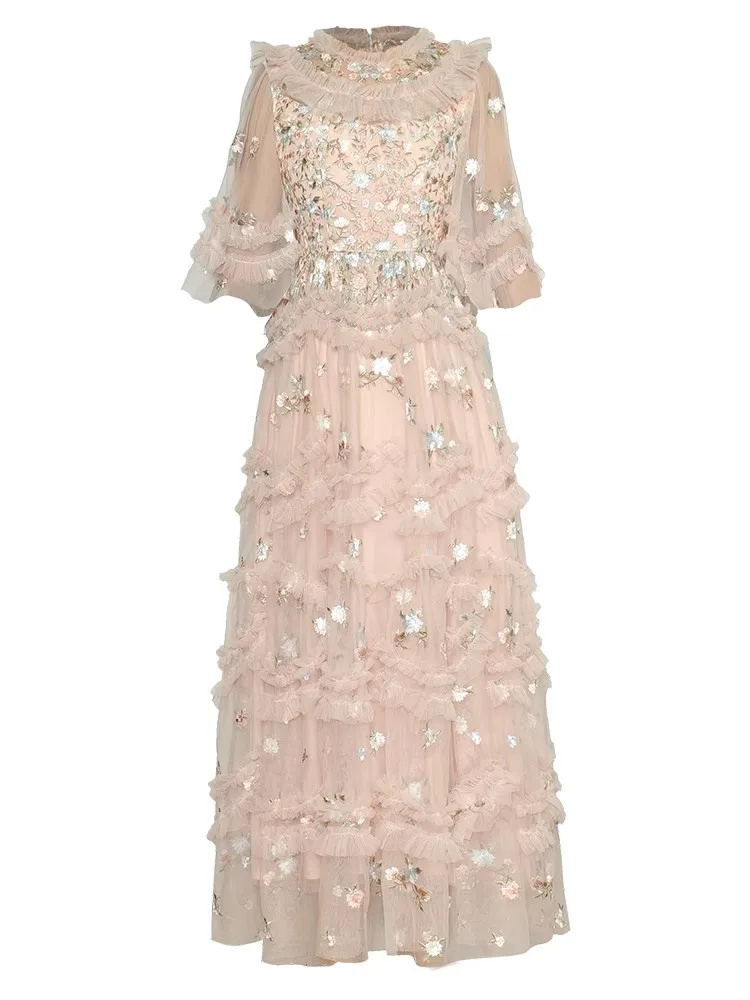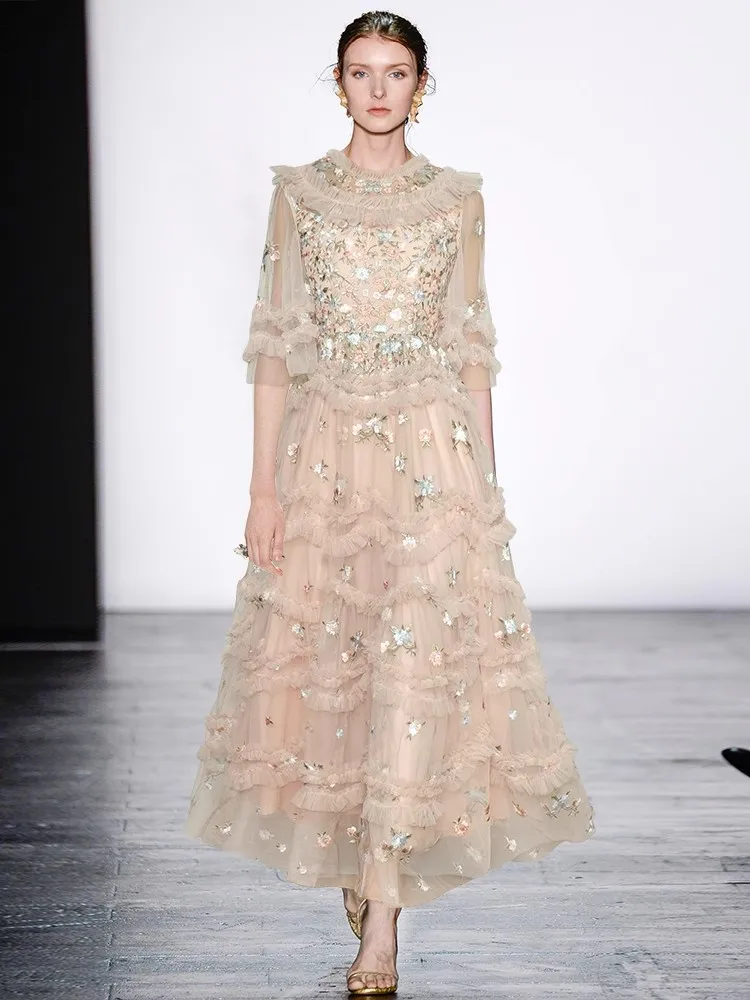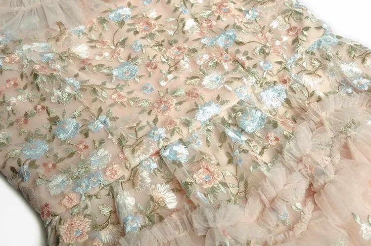 MARYYYIMEI-فستان نسائي شبكي ، مطرز بالزهور ، فطريات شجرة صالحة للأكل ، فساتين ماكسي أنيقة للحفلات ، ربيع ، موضة الصيف ، الكشكشة