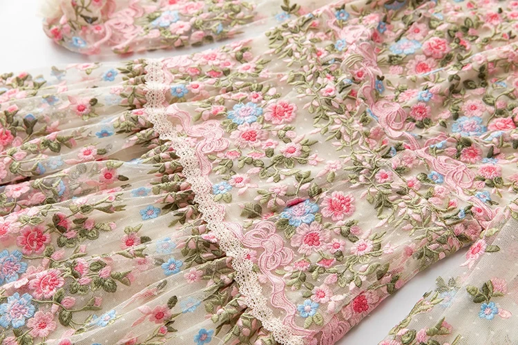 Seasixiang-فستان ماكسي شبكي عتيق بطول الأرض للنساء ، رقبة دائرية ، كم فانوس ، تطريز زهور ، موضة ، خريف ، حفلة