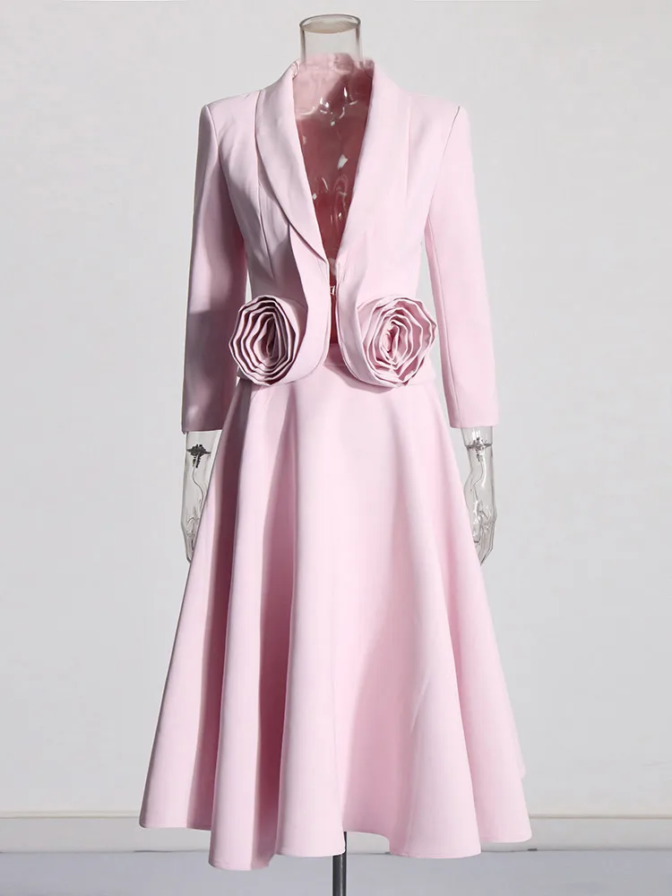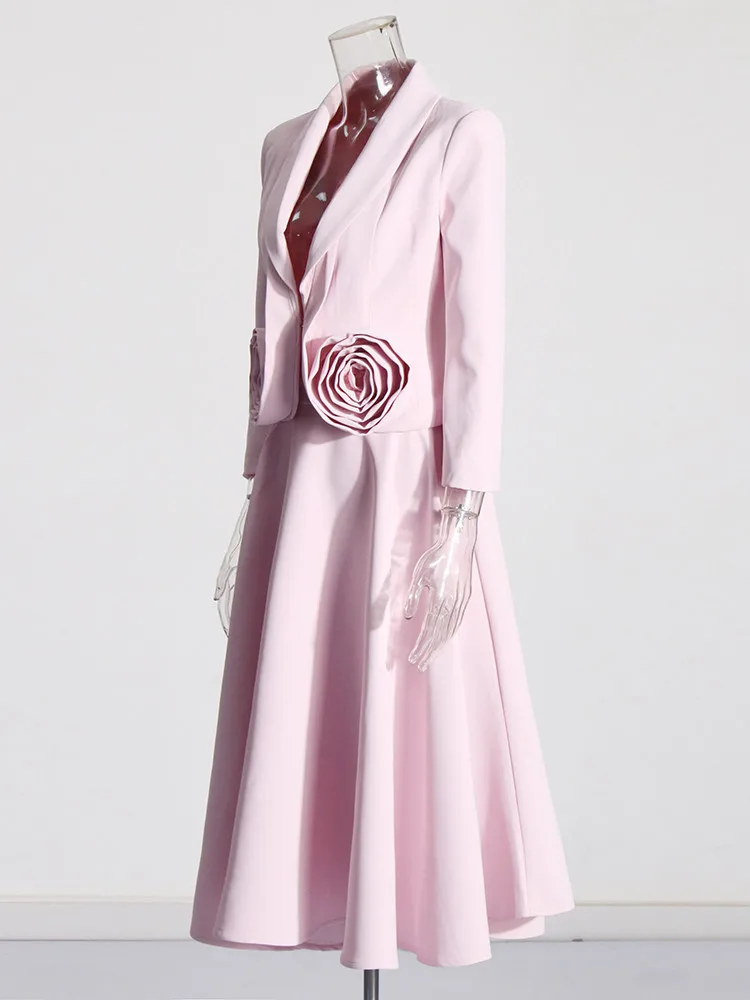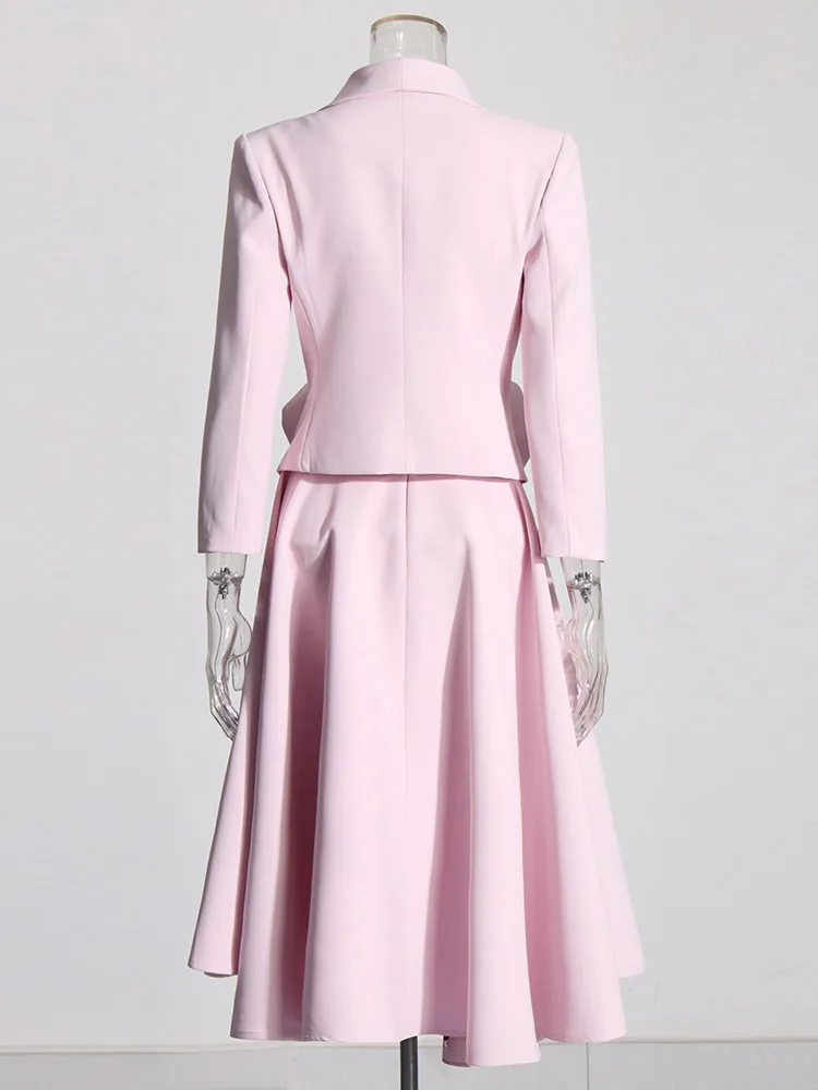 Twotwinstyle مجموعة أنيقة من قطعتين للنساء طويلة الأكمام أعلى مع طوق شال وتنورة عالية الخصر